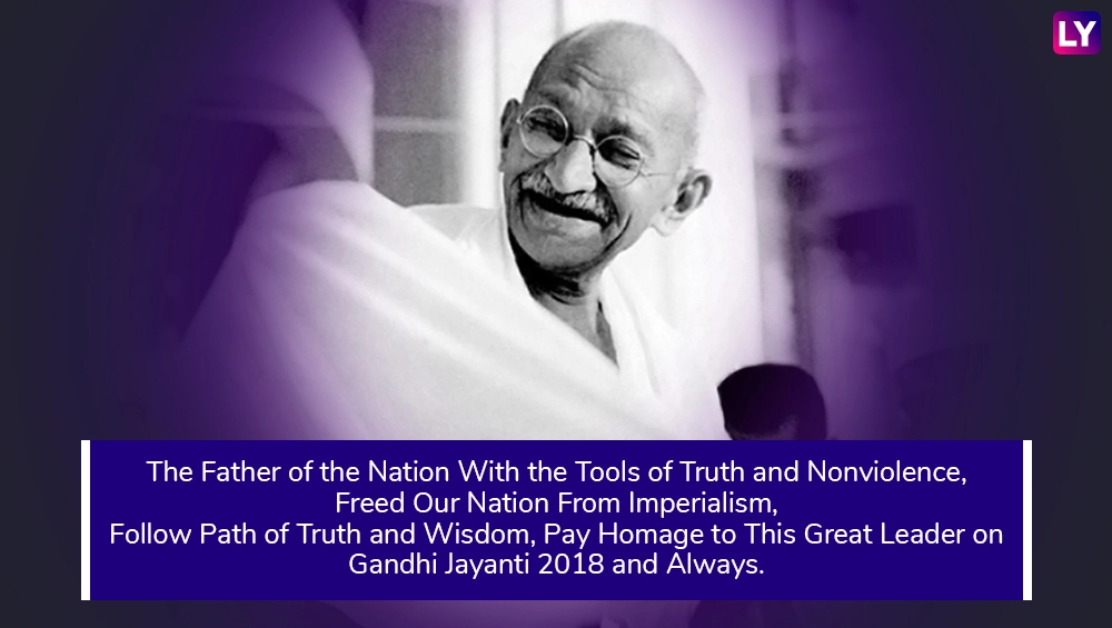 We have compiled a list of English WhatsApp messages, Facebook status, SMS, GIFs you can send yourย friends, family and others on Gandhi Jayanti. Gandhi Jayanti is known as International Day of non-violence worldwide. In 2007, the United Nations General Assembly established October 2 as the International Day of Non-Violence.ย Mahatma Gandhi Jayanti 2018: Importance and Significance of Celebrating The Birthday of Father of The Nation