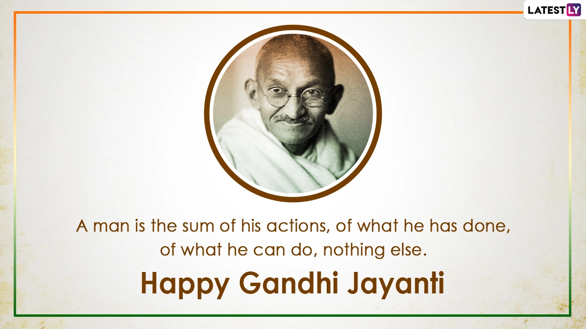 WhatsApp Message Reads: A man is the sum of his actions, of what he has done, of what he can do, nothing else. Happy Gandhi Jayanti.