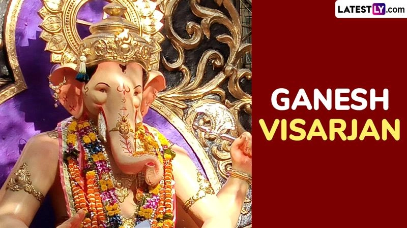 The immersion of Lord Ganesha is seen as a way of his returning to his celestial abode on Mount Kailash, carrying away devotees’ sorrows and leaving behind blessings for prosperity. Beyond spirituality, Ganesh Visarjan fosters a strong sense of unity and community bonding, as people come together in devotion, chanting prayers and celebrating with music, dance, and processions. It spreads the message of joy, humility, and environmental harmony, urging people to adopt eco-friendly idols and sustainable practices. To mark Ganesh Visarjan 2025 on the fifth day, you can share Ganpati Visarjan 2025 slogans, messages, wishes, greetings, funny Hinglish sayings, HD images, GIFs and wallpapers.