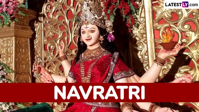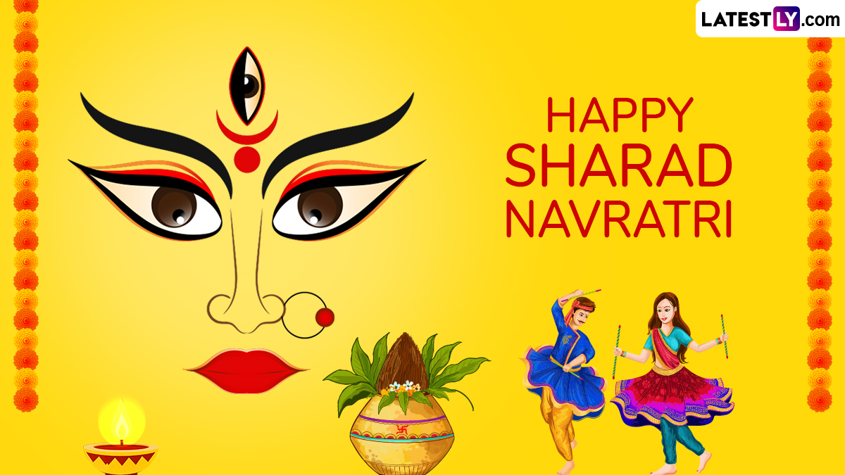 Shardiya Navratri 2025 will begin on September 22. This annual commemoration is considered to be the most important Navratri celebration and is celebrated by invoking Goddess Shakti into our houses for nine days. Shardiya Navratri celebration begins with the Shardiya Navratri Ghatasthapana, where an earthen pot is decorated, lit with a diya and revered for the next nine days. On the occasion of Shardiya Navratri Ghatasthapana, people often share Happy Shardiya Navratri Ghatasthapana 2025 wishes and messages, Shardiya Navratri Ghatasthapana 2025 greetings in Marathi, Shardiya Navratri Ghatasthapana images and wallpapers, Shardiya Navratri Ghatasthapana WhatsApp stickers and Happy Shardiya Navratri Ghatasthapana Facebook status pictures with family and friends. Ghatasthapana 2025 Muhurat and Puja Rituals on September 22: All You Need To Know About the First Day of Sharad Navratri.