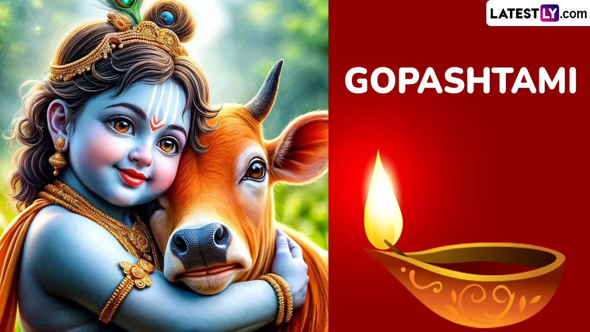 Gopashtami, a Hindu festival dedicated to cows and calves, is observed on the eighth day of the Kartik month (Shukla Paksha). The day celebrates the reverence of cows, seen as sacred animals in Hinduism, embodying purity, wealth, and life. Cows are believed to carry divine energy and are honoured as "Gau Mata" or "Mother Cow" in many traditions. The festival is linked to the worship of Lord Krishna, particularly his role as a cowherd. According to legend, Lord Krishna and his brother Balarama were tasked with herding cows for the first time on this day, symbolising their coming of age. Gopashtami 2024 falls on Saturday, November 9. On the auspicious day, we bring you Gopashtami 2024 wishes and HD images that you can download for free online. These Lord Krishna wallpapers, messages and greetings are perfect to wish your friends and family a Happy Gopashtami.
