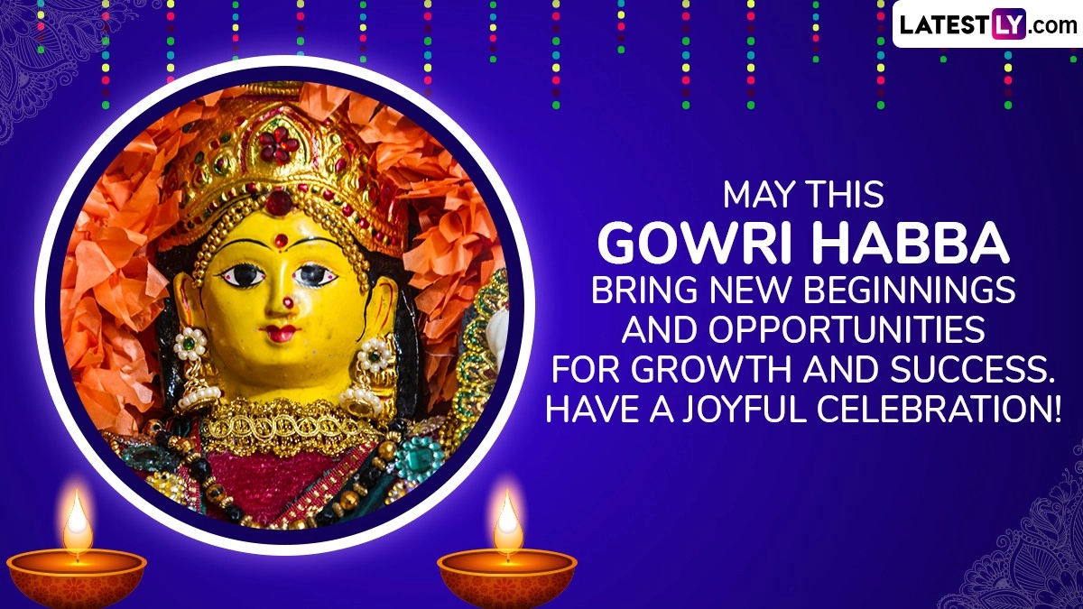Gowri Habba, also known as Gauri Habba, is a significant festival celebrated in Karnataka, observed one day before Ganesh Chaturthi. This festival is dedicated to Maa Parvati, the divine consort of Lord Shiva and the mother of Lord Ganesha. Gowri Habba marks an important prelude to Ganesh Chaturthi, highlighting the reverence for Maa Parvati and setting the stage for the grand Ganesh celebrations that follow. Gowri Habba 2024 falls on Friday, September 6. On this day, devotees, particularly women, prepare for the festival by meticulously cleaning and decorating their homes. Devotees also share Gowri Habba wishes and HD images to each other to celebrate the festival. In this article, we bring you Gowri Habba 2024 wishes, HD images of Lord Ganesha and Goddess Parvati, Gowri Habba greetings and wallpapers that you can download for free online and share with your close friends and family,