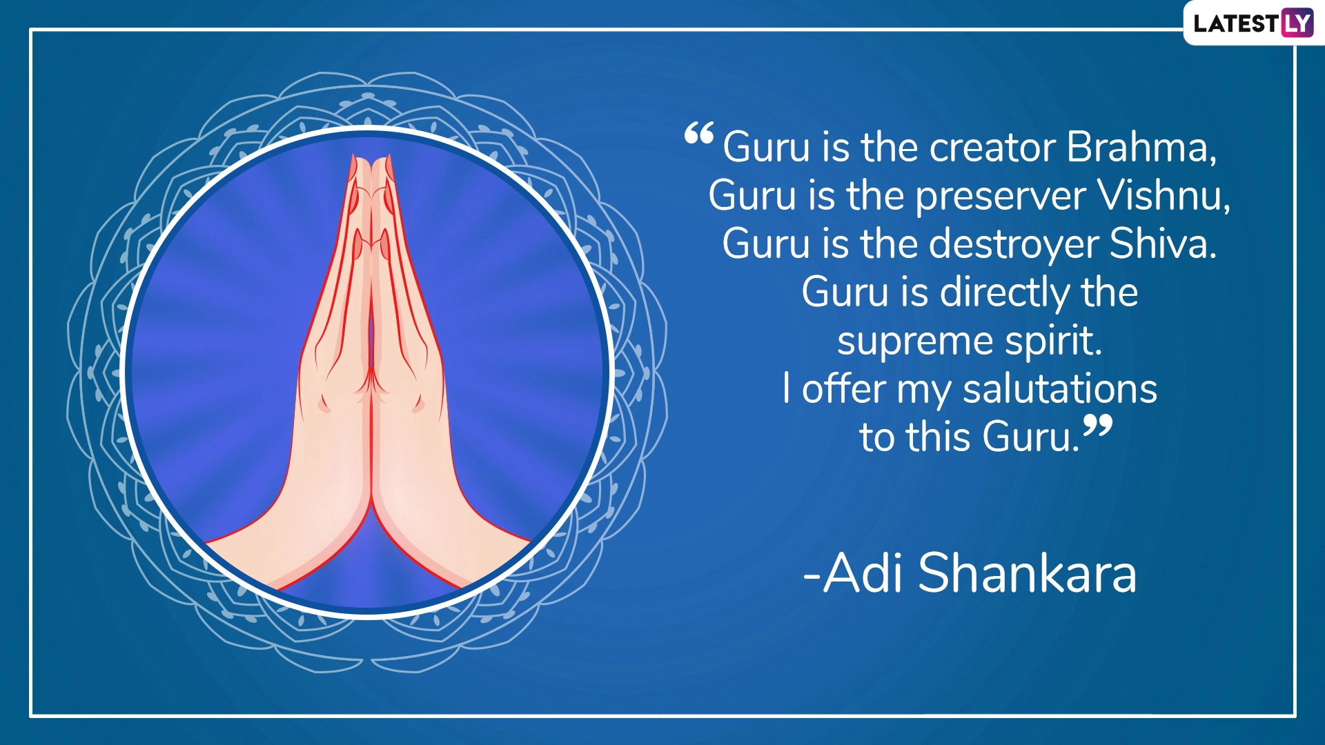 "Guru is the creator Brahma, Guru is the preserver Vishnu, Guru is the destroyer Shiva. Guru is directly the supreme spirit. I offer my salutations to this Guru." Adi Shankara