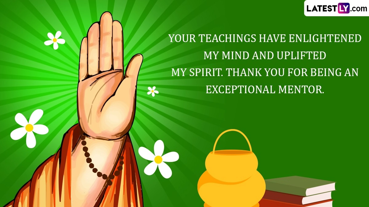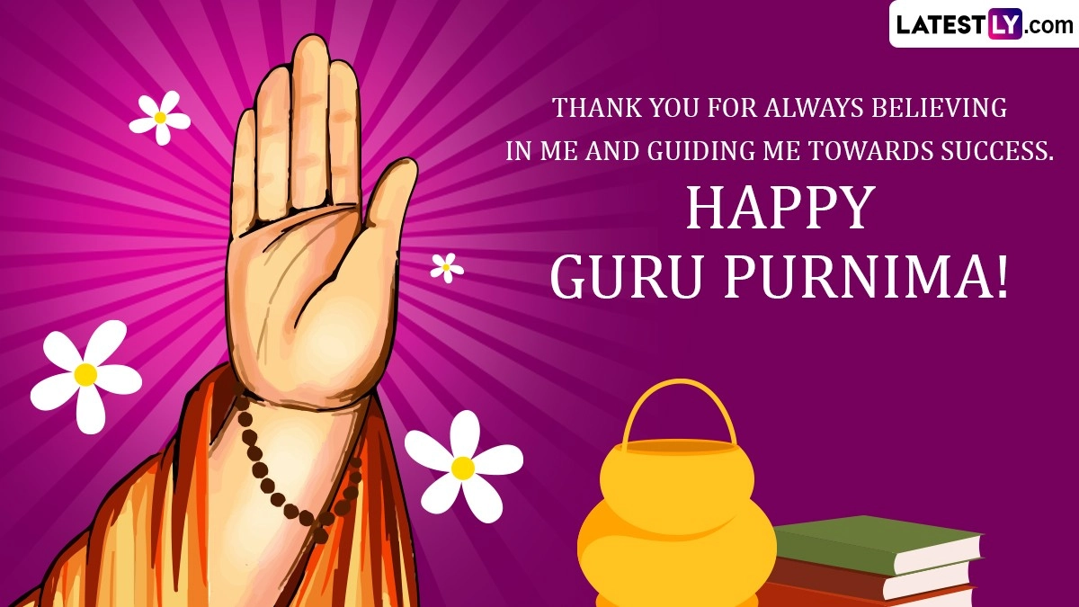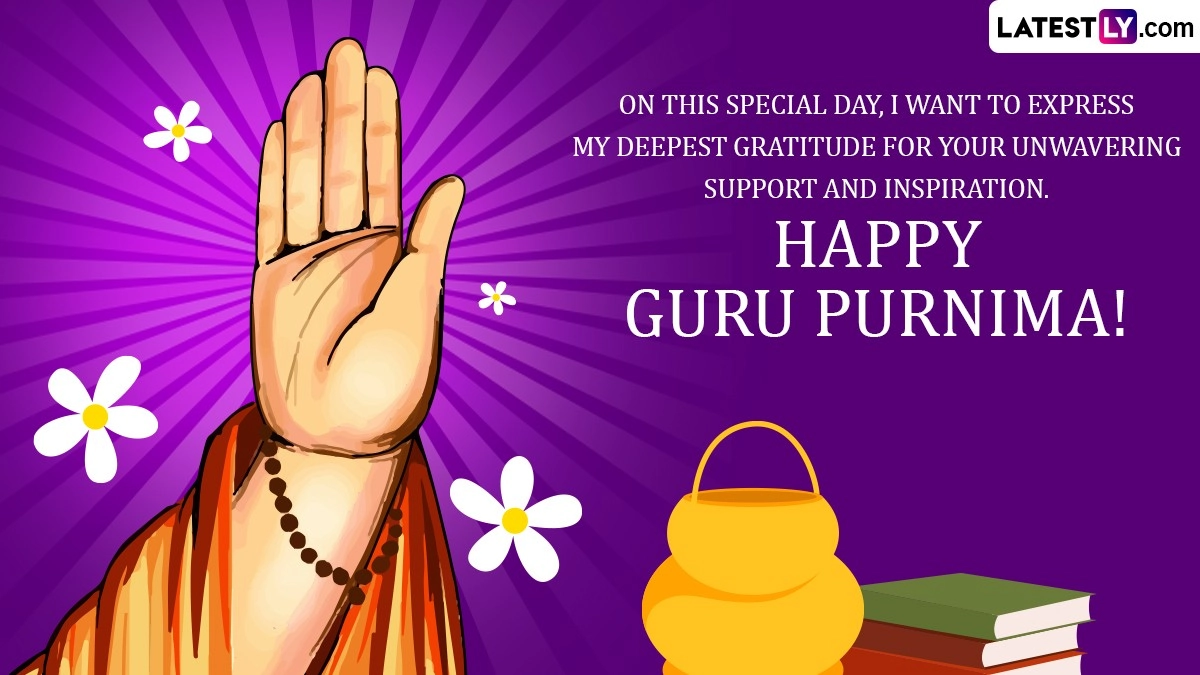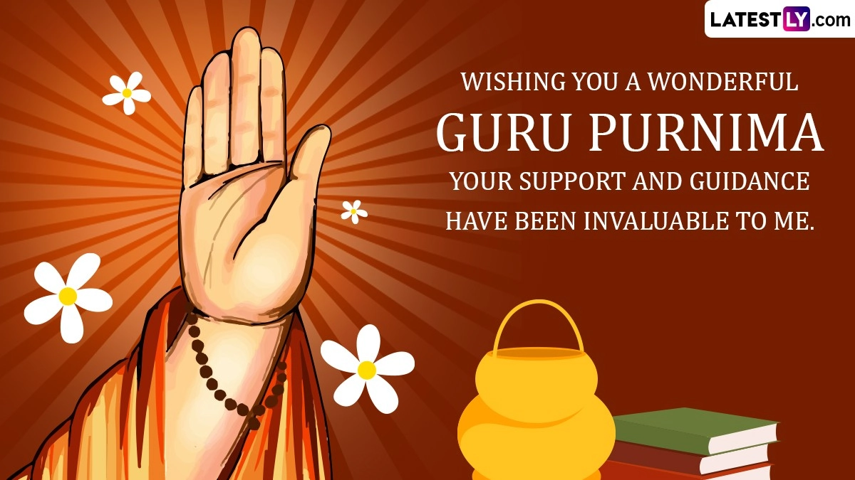 Guru Purnima, celebrated on the Full Moon day (Purnima) in the month of Ashadha, is a significant festival in Hindu, Buddhist, and Jain traditions dedicated to honouring and expressing gratitude towards one's guru or spiritual teacher. This day holds immense importance as it commemorates the birth anniversary of Veda Vyasa, the ancient sage who compiled the Vedas and authored the Mahabharata. Guru Purnima 2024 falls on a Sunday, July 21. It is also known as Vyasa Purnima and is a time for disciples to pay homage to their Gurus, acknowledging their guidance, wisdom, and contributions to their spiritual journey. The rituals of Guru Purnima involve various forms of reverence towards the Guru. Disciples perform special Pujas, offer flowers, fruits, and other items, and engage in spiritual practices such as meditation, chanting, and reading sacred texts. As you observe Guru Purnima 2024, we at LatestLY, bring you Happy Guru Purnima wishes, Guru Purnima greetings, HD images, thoughtful messages, wallpapers and quotes to thank your mentor.