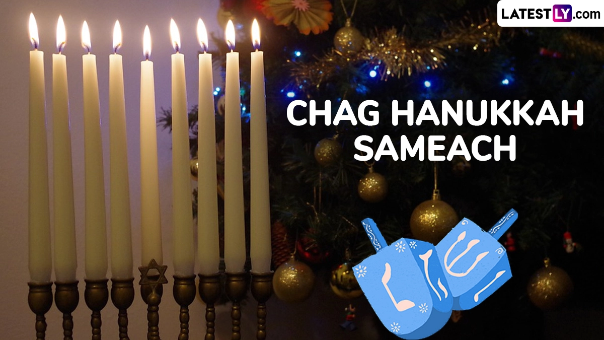 Hanukkah is the annual Jewish festival that is marked with great enthusiasm and fervour by Jews across the world. Hanukkah 2024 begins on December 25 and will go on till January 2. The eight-day festivity is also known as festival of lights and is marked by lighting eight candles, one on each night of Hanukkah. To celebrate Hanukkah, people often share Happy Hanukkah 2024 wishes and messages, Hanukkah greetings, Happy Hanukkah images and wallpapers, Happy Hanukkah 2024 WhatsApp messages and pictures with family and friends. Hence, we bring you Hanukkah 2024 images and Chag Hanukkah Sameach HD wallpapers for free download online. Hanukkah 2024 Start and End Dates: History, Significance and Other Details to Know About the Jewish ‘Festival of Lights.’