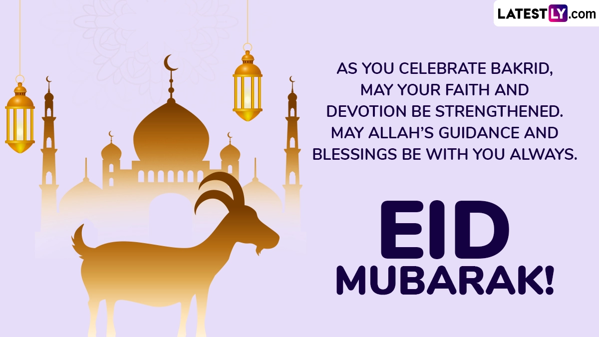 Bakra Eid, also known as Eid al-Adha or Bakrid or the Festival of Sacrifice, is one of the most important occasions celebrated by the Muslim community worldwide. This day is celebrated to mark the willingness of Prophet Ibrahim to sacrifice his son, Ismail, as an act of obedience to God's command. It was then that God intervened and provided a ram for sacrifice instead of Ismail. Eid ul-Adha is observed on the 10th day of the Dhul Hijjah month. Eid al-Adha 2025 in India is on June 7. As we celebrate Eid al-Adha 2025 festival, share these Happy Bakrid 2025 wishes, Eid-Ul-Adha Instagram captions, messages, greetings, WhatsApp quotes, HD images and wallpapers.