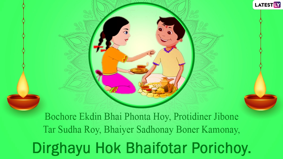 WhatsApp Message Reads:Â Prem Preeti Ar Sneho Diye Gora, Moder Bhai Boner Ei Bindhon, Lokhyo Praner Tane Hridoy Miliye, Bhalobasar Dip Jabo Jaliye, Jibon Judhhe Jodi Pori Keu Pichiye, Bedona Kator Chokher Jol Debo Muchiye. Happy Bhai Phonta!
