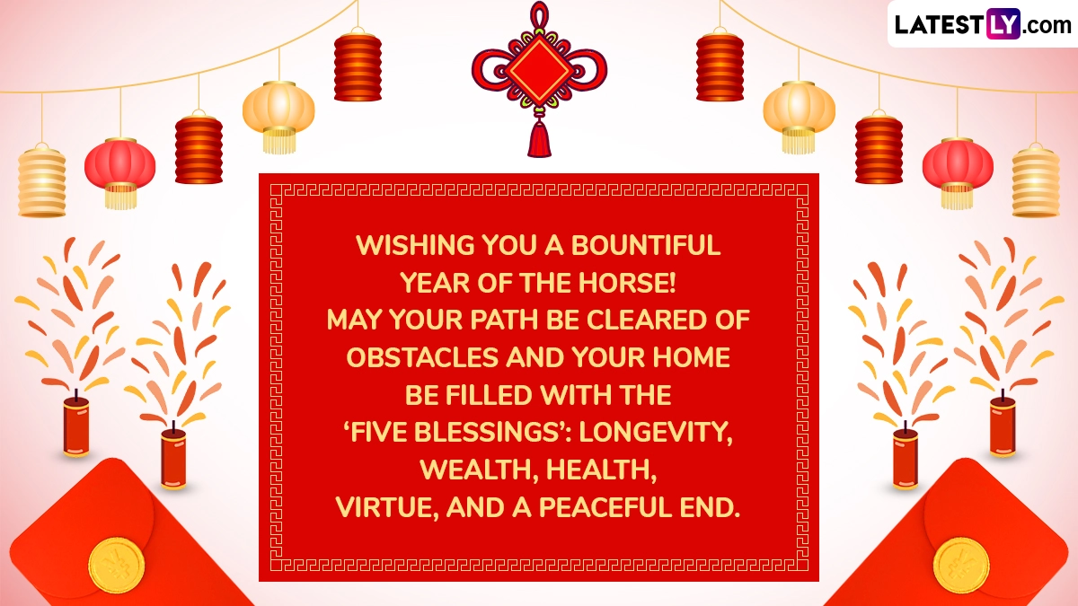 Happy Chinese New Year 2026 Wishes: Wishing You a Bountiful Year of the Horse! May Your Path Be Cleared of Obstacles and Your Home Be Filled With the āFive Blessingsā: Longevity, Wealth, Health, Virtue, and a Peaceful End.