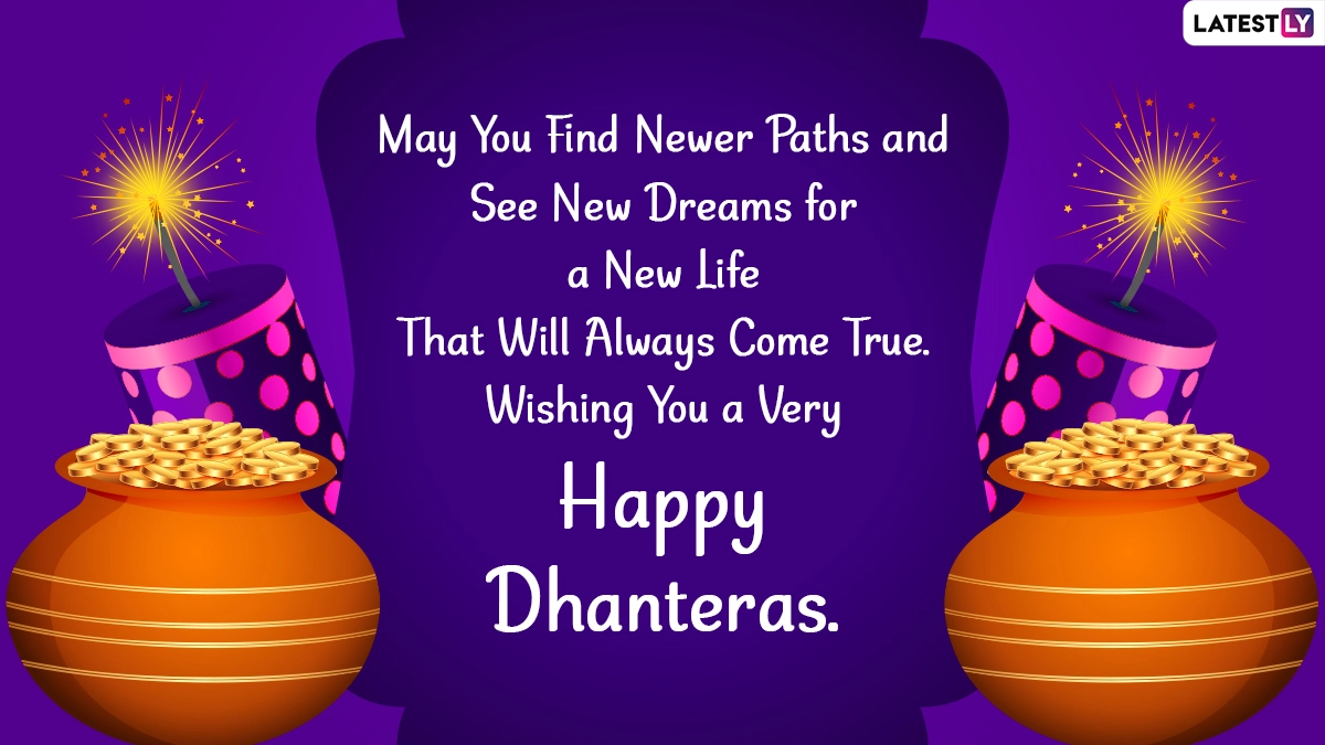 Dhanteras is the first official day of the Diwali celebration. Dhanteras 2021 will be commemorated on November 2. This celebration is sure to be filled with various fun festivities and traditions. Dhanteras is said to be a very auspicious day where people buy new appliances or make big purchases for the house, which is believed to bring good luck. As we prepare to commemorate Dhanteras 2021, here are some Happy Dhanteras wishes, Dhanteras 2021 messages. Happy Dhanteras 2021 WhatsApp Stickers and Facebook Status Pictures that you can share with your family and friends. Dhanteras and Diwali 2021 Date in India: Auspicious Time To Buy Gold, Shubh Muhurat for Dhantrayodashi Puja and Significance of First Day of Deepawali.