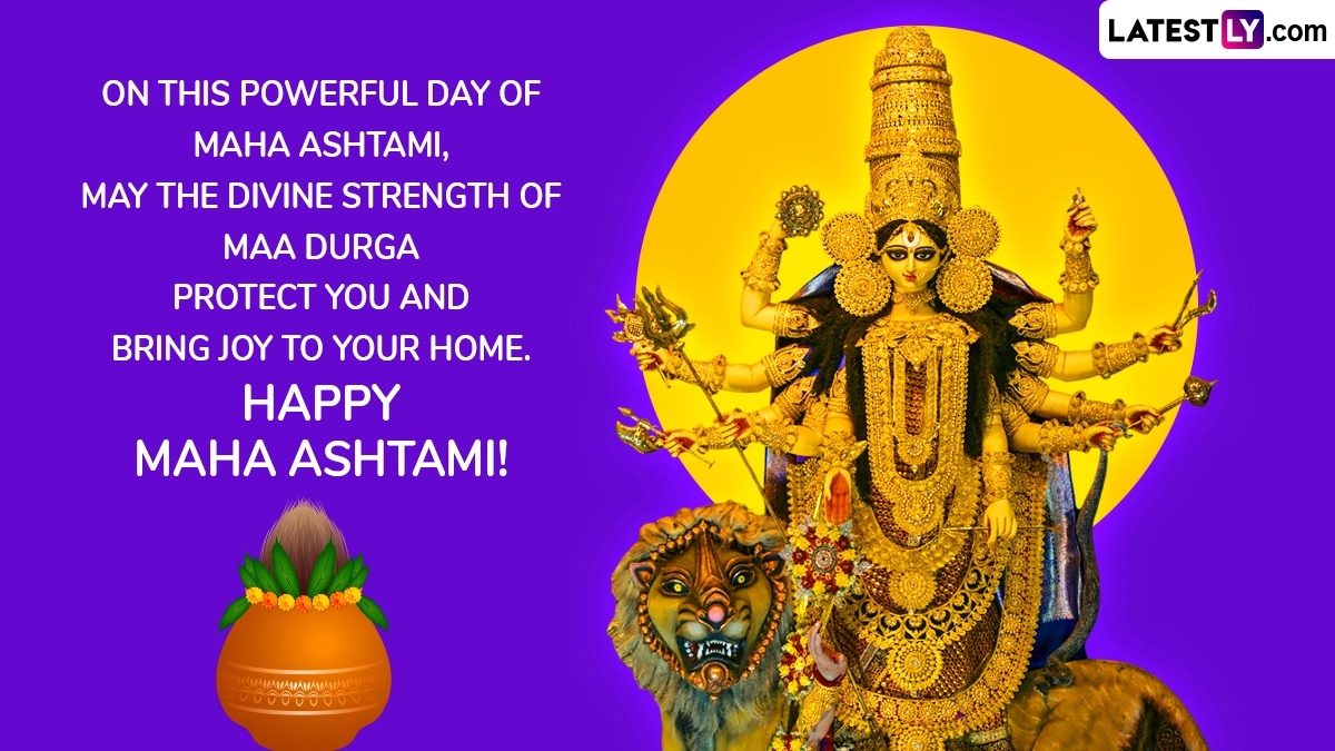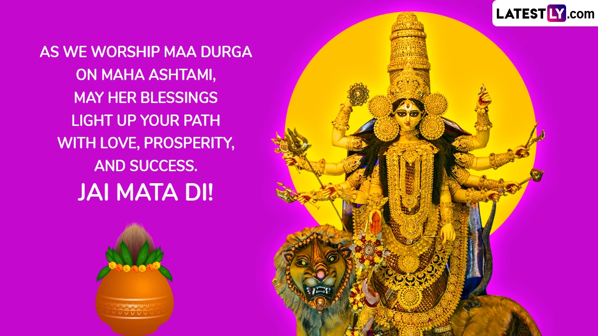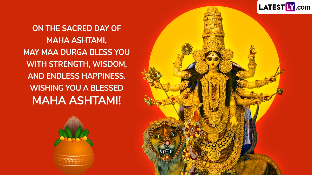 Durga Ashtami is considered to be one of the most important days of the Pujo celebration. Durga Ashtami 2025 falls on September 30 and is sure to be marked with great fervour and enthusiasm by one and all. The occasion of Durga Ashtami or Maha Ashtami is filled with various important rituals and events. The commemoration is also an integral part of the celebration of Goddess Durga’s battle against the evil demon Mahishasura. People are sure to share Happy Durga Ashtami 2025 wishes and messages, Maha Ashtami 2025 greetings, Happy Durga Ashtami images and wallpapers, Durga Ashtami WhatsApp quotes and Mahashtami 2025 Facebook status pictures with family and friends. Durga Ashtami or Maha Ashtami 2025 Date, Puja Rituals and Significance: Know the Importance of the Most Auspicious Day of Durga Puja Festival.