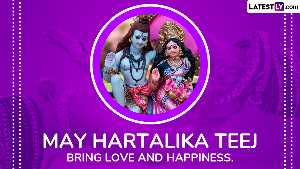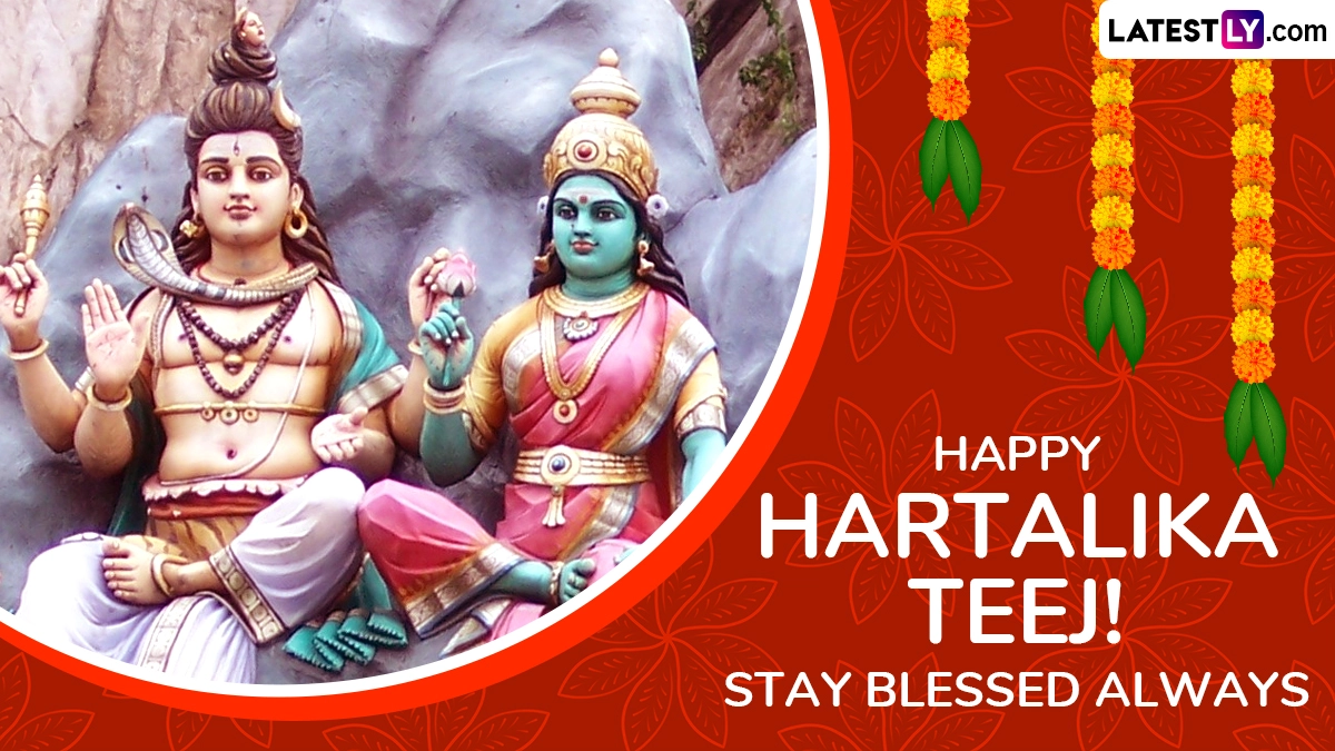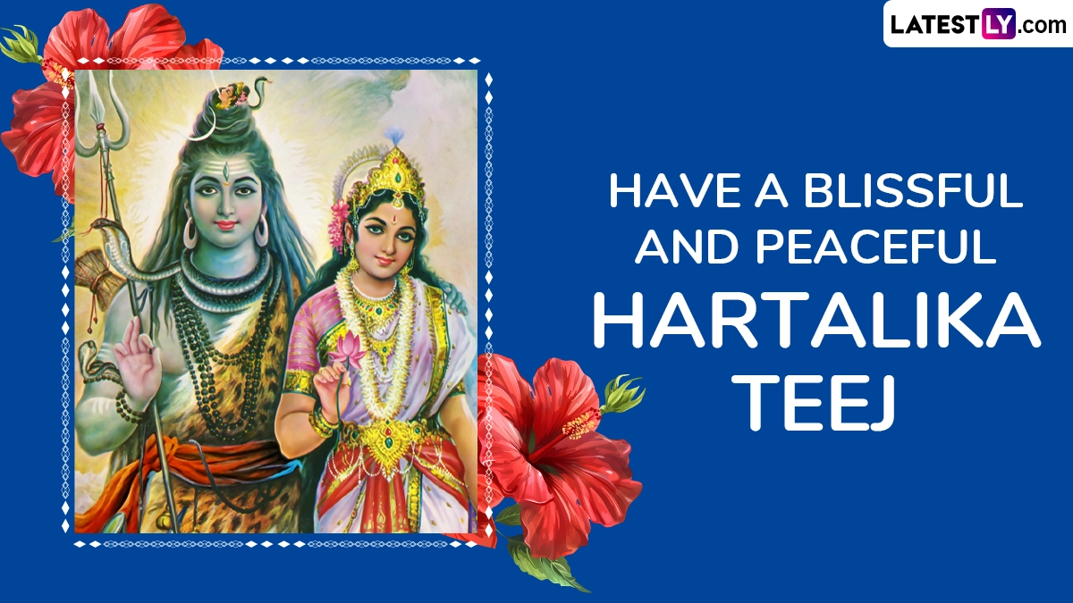 Hartalika Teej is one of the most significant Hindu festivals observed by women across India with great devotion. The festival holds great religious and cultural importance, especially in the North Indian states of Rajasthan, Madhya Pradesh, Uttar Pradesh, and Bihar. Hartalika Teej falls on the third day of Shukla Paksha in Bhadrapada. This year, Hartalika Teej 2025 falls on Tuesday, August 26. As Hartalika Teej 2025 nears, here’s a list of amazing wishes, Hartalika Teej messages and greetings to share with your family and friends. Check out the best collection of Happy Hartalika Teej wishes, Hartalika Teej HD images, Happy Hartalika Teej Facebook messages, WhatsApp sticker greetings and GIFs to celebrate the festival. Share these Happy Hartalika Teej images, Hartalika Teej greetings and HD wallpapers with your family, friends and relatives. Hartalika Teej Images, Wishes: Download Shiva-Parvati Pics, Greetings & Messages to Wish Happy Teej to Your Loved Ones.