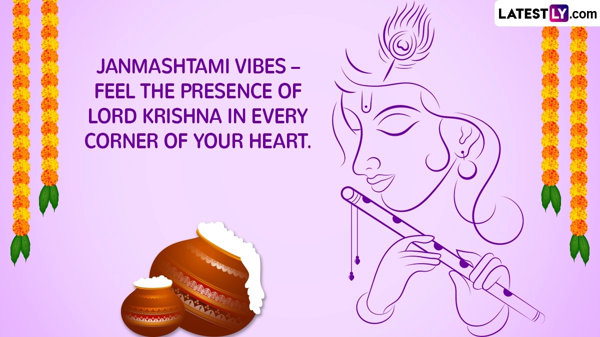 WhatsApp Message Reads: Janmashtami Vibes – Feel the Presence of Lord Krishna in Every Corner of Your Heart.