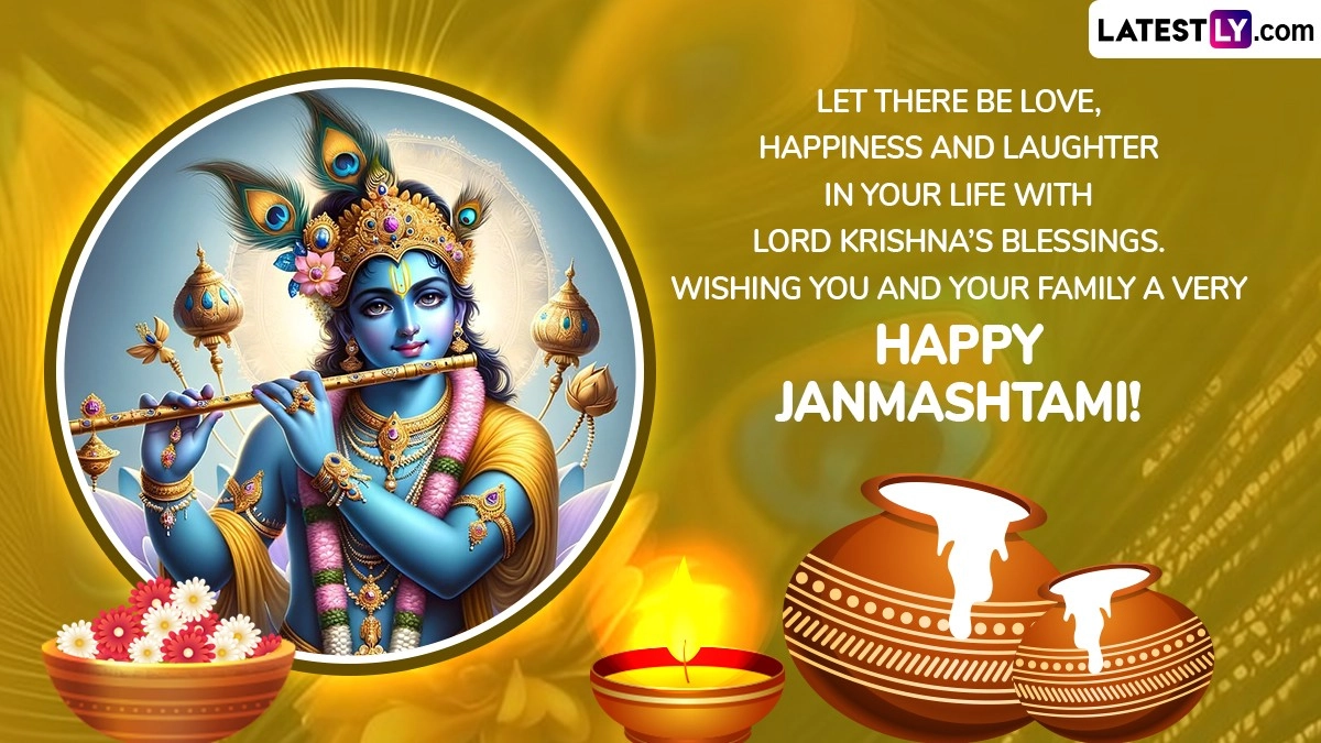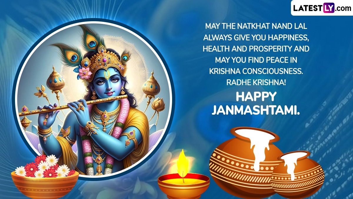 On Janmashtami, sharing Happy Krishna Janmashtami greetings and wishes is a meaningful way to extend the joy and spiritual essence of the festival. People often exchange messages of happiness, peace, and divine blessings, expressing their devotion to Lord Krishna and their best wishes for a prosperous and harmonious year ahead. These greetings help strengthen bonds among family, friends, and the broader community, reinforcing the festival’s sense of unity and shared faith. It also provides an opportunity for individuals to connect on a deeper level, reflecting on the values of love, devotion, and righteousness embodied by Krishna. So, celebrate the joyous festival with these Happy Krishna Janmashtami 2024 greetings, HD images, WhatsApp messages, Lord Krishna's wallpapers, Gokulashtami wishes, quotes and wallpapers.