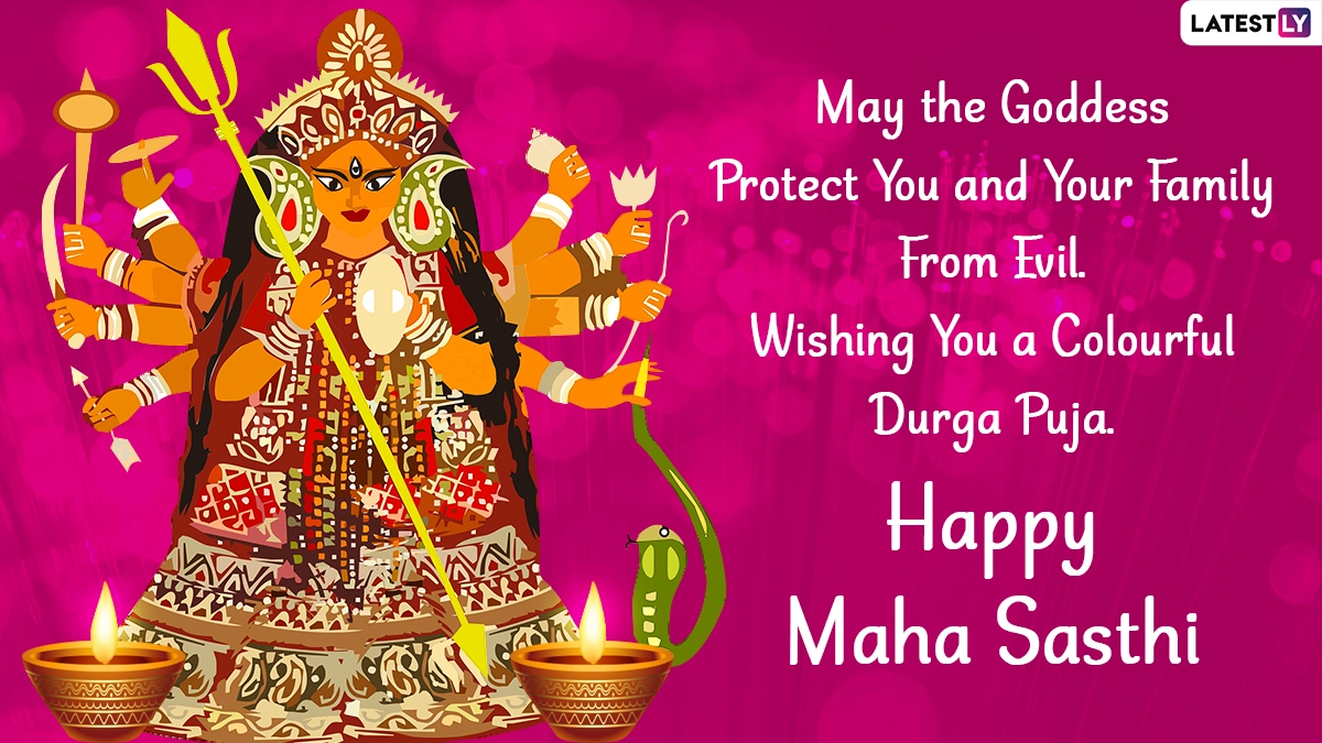WhatsApp Message Reads: May the Goddess Protect You and Your Family From Evil. Wishing You a Colourful Durga Puja. Happy Maha Sasthi
