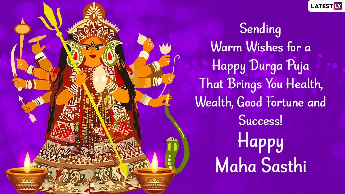 WhatsApp Message Reads: Sending Warm Wishes for a Happy Durga Puja That Brings You Health, Wealth, Good Fortune and Success! Happy Maha Sasthi