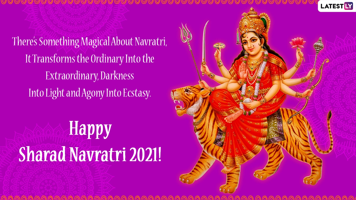 The year 2021, will see the festival of Sharad Navratri starting from Thursday. Also, this time Maa Durga will come riding on a 'doli'. When Maa Durga comes riding on a doli, she brings happiness and prosperity. We have for you a collection of Happy Navratri 2021 wishes, Happy Sharad Navratri greetings, Navratri images, Happy Sharad Navratri 2021 HD wallpapers, Maa Durga photos, Jai Mata Di pics, WhatsApp status, and a lot more: