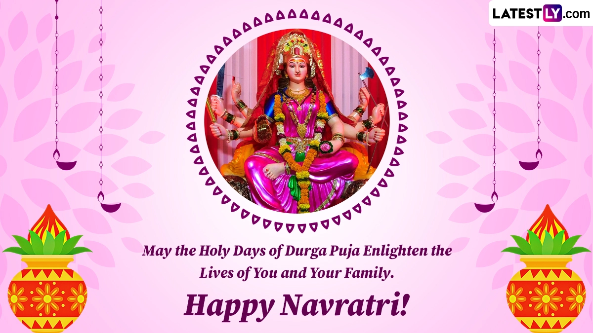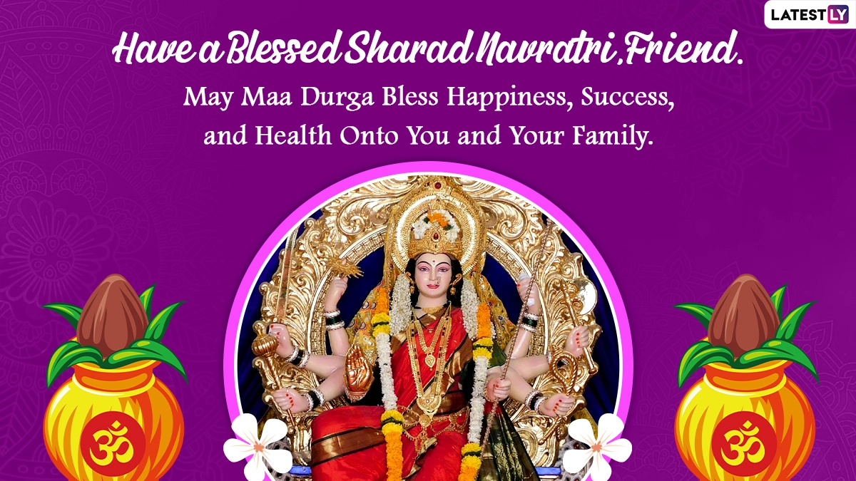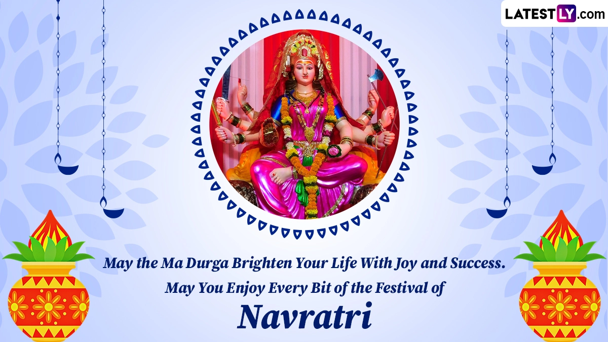 Sharad Navratri is one of the most celebrated and auspicious Hindu festivals, dedicated to the worship of Goddess Durga and her nine incarnations. Navratri marks the beginning of the new season. Sharad Navratri is the most important of all the Navratris throughout the year. Sharad Navratri 2024 begins on October 3 and ends on October 12. The festivity spans nine days, culminating in Vijayadashami or Dussehra. Sharad Navratri is a time of devotion, festivity and cultural performances with devotees honouring Maa Durga and seeking her blessings for strength, prosperity and protection. You can celebrate Sharad Navratri 2024 by sharing heartwarming wishes and greetings. Navratri 2024 Colours List for 9 Days: Here's the Date-Wise 9 Colors To Wear on Nine Days of Sharad Navaratri in October.