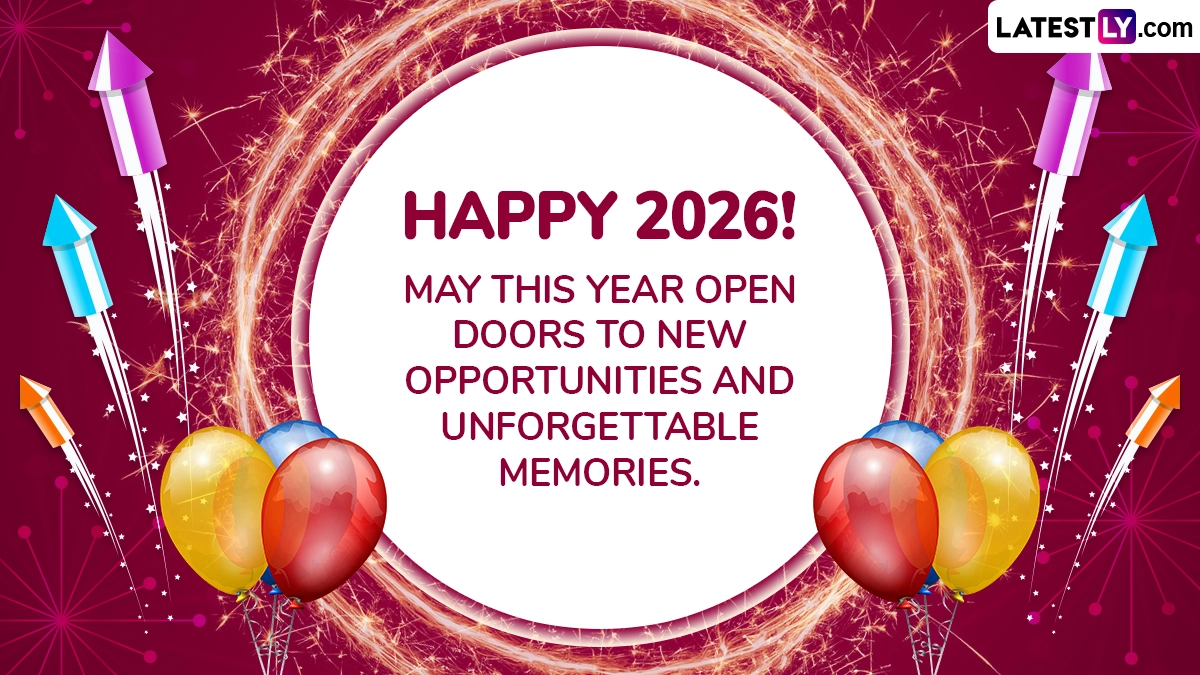 Mumbai, December 31: As the clock ticks down to midnight, anticipation builds across the globe for New Year 2026. This year, the tradition of exchanging heartfelt Happy New Year 2026 wishes and images remains a cornerstone of the celebration. Millions are seeking the perfect blend of words and visuals to convey their wishes and greetings on the New Year's Eve. Below are some Happy New Year 2026 wishes and images that you can sent to your relatives, colleagues and friends.