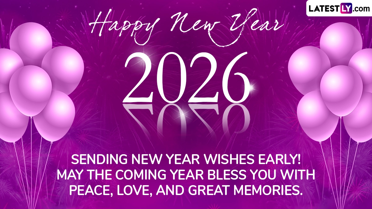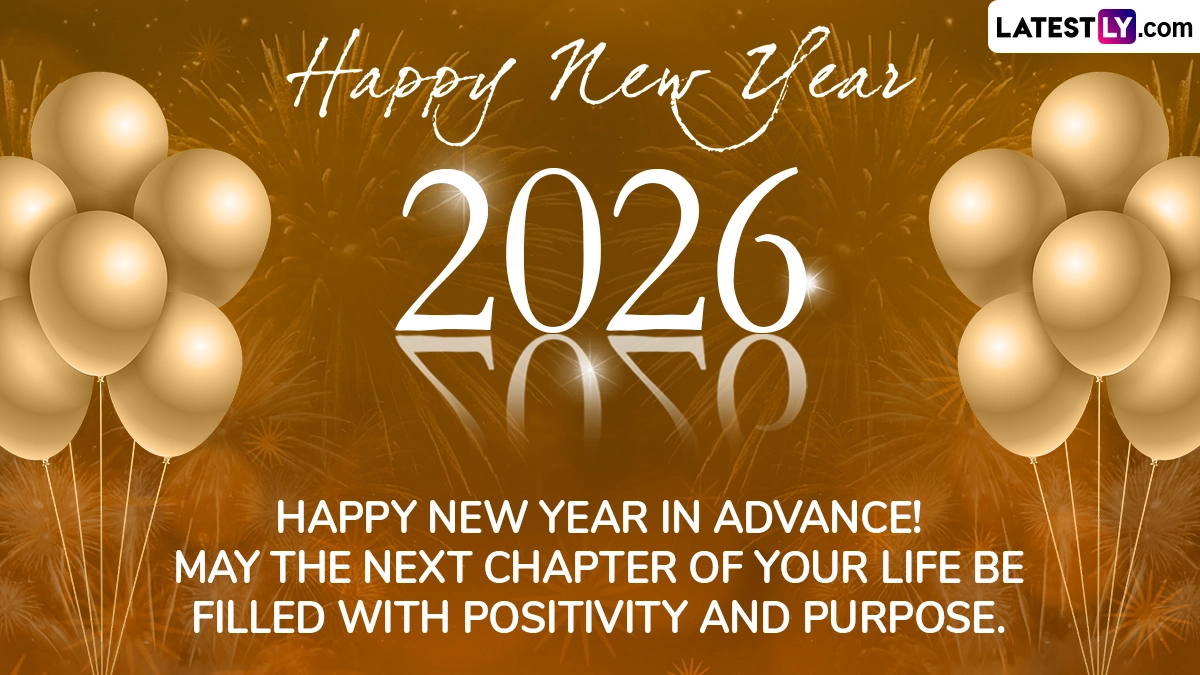 Mumbai, December 31: As it is New Year's Eve 2025, millions are preparing to welcome New Year 2026 with enthusiasm and party mood. The transition to the New Year remains one of the world's most significant cultural milestones, marked by a surge in digital greetings and personal wishes. Whether through instant messaging on WhatsApp and Telegram or social media like Instagram and Facebook, the tradition of sending "Happy New Year in Advance" wishes has become a popular way for people to connect before the midnight celebrations begin. Below are some "Happy New Year 2026 in Advance" wishes, greetings, WhatsApp messages and "New Year's Eve 2025" images and HD wallpapers.