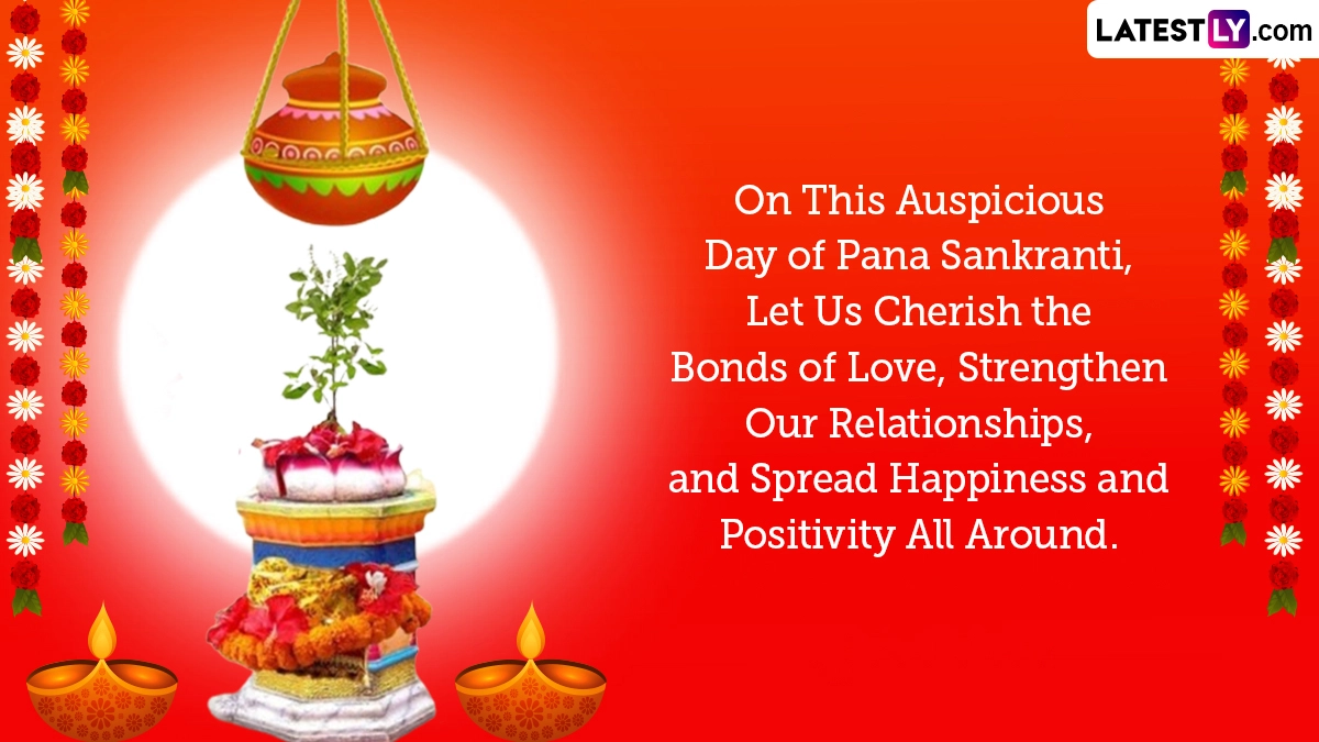 Pana Sankranti, also known as Maha Vishuva Sankranti or Mesha Sankranti, is a festival celebrated predominantly in the eastern Indian states of Odisha and West Bengal. It marks the beginning of the solar year and falls on the first day of the traditional Odia calendar month of "Baisakh" or the first day of the Hindu solar month of "Mesha," typically around mid-April. As you observe Pana Sankranti 2024, we at LatestLY have compiled a collection of messages that you can download and share with all your near and dear ones to wish them on this day with WhatsApp stickers, images, HD wallpapers and SMS.