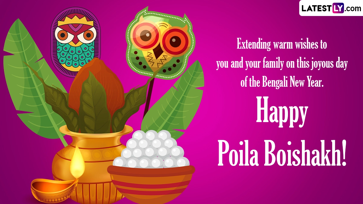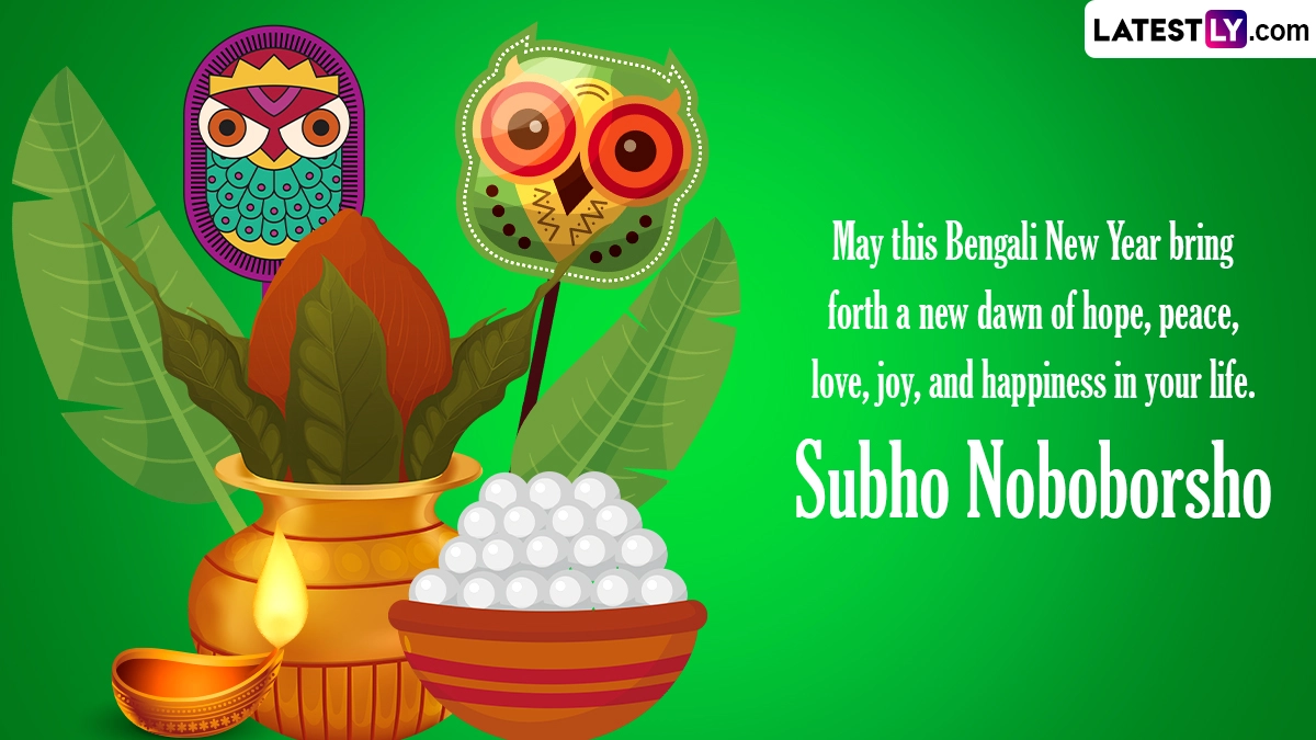 Pohela Boishakh (Poila Baisakh) is an auspicious day that marks the first day of the Bengali calendar. Pohela Boishakh, also known as the Bengali New Year, is celebrated with great enthusiasm by the Bengali community in West Bengal, Tripura, Jharkhand and parts of Assam. This year, Pohela Boishakh 2024 will be celebrated on Sunday, April 14. The Sankranti Moment of Pohela Boishakh is at 09:15 PM on April 13. As per historical records, the origin of Pohela Boishakh festivities dates back to the traditions of Old Dhaka's Muslim community during Mughal rule, as well as the proclamation of tax collection reforms of Akbar. In this article, we bring to you a list of Pohela Boishakh 2024 greetings in Bengali, Happy Pohela Boishakh wishes and messages, Pohela Boishakh quotes, Noboborsho images and Pohela Boishakh pics that you can share with your family and friends. You can also download these Happy Pohela Boishakh images and send them to your loved ones on the special occasion of the Bengali New Year. Happy Poila Baisakh 2024 Wishes and Subho Noboborsho in Bengali Images: Share Wallpapers, Messages and Quotes With Your Loved Ones To Celebrate the Bengali New Year.