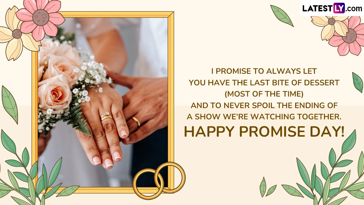 Mumbai, February 11: As Valentine’s Week reaches its midpoint, couples across the globe are celebrating Promise Day today, Wednesday, February 11, 2026. Following the lighthearted traditions of Chocolate Day and Teddy Day, this fifth day of the week-long festival shifts the focus toward the foundational pillars of any relationship: trust, loyalty, and long-term commitment. Scroll down to find "Happy Promise Day 2026" greetings, romantic messages, meaningful vows and HD wallpapers to share.