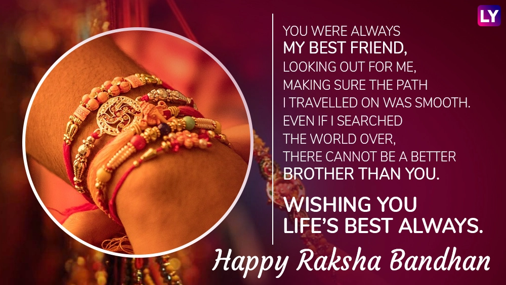 Raksha Bandhan WhatsApp Message: You Were Always My Best Friend, Looking Out for Me, Making Sure the Path I Travelled on Was Smooth. Even If I Searched the World Over, There Cannot Be a Better Brother Than You. Wishing You Life’s Best Always!
