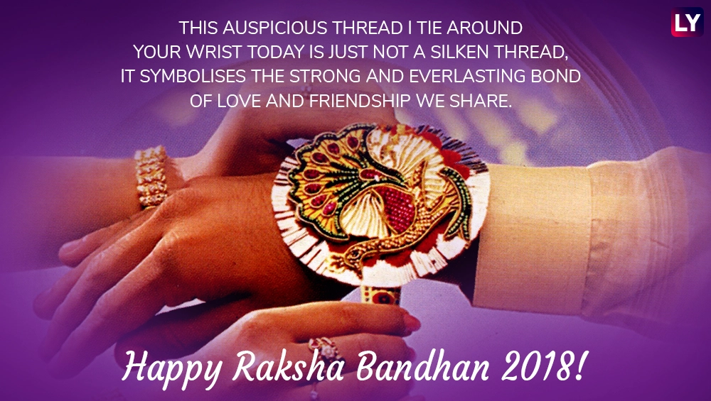 Happy Raksha Bandhan 2018 Message: This Auspicious Thread I Tie Around Your Wrist Today Is Just Not a Silken Thread, It Symbolises the Strong and Everlasting Bond of Love and Friendship We Share. Happy Raksha Bandhan 2018!