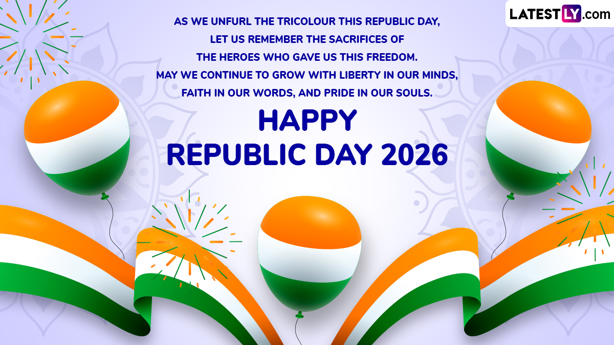 New Delhi, January 26: India celebrates its 77th Republic Day (Gantantra Diwas) today, January 26, 2026, with a grand display of military strength and cultural heritage at Kartavya Path. This year’s celebrations hold special historical significance as the nation commemorates the 150th anniversary of the national song, "Vande Mataram." As citizens celebrate Republic Day 2026, digital platforms are being flooded with messages of pride and unity. Below are some of the most popular Happy Republic Day 2026 greetings, patriotic messages and quotes being shared this year.