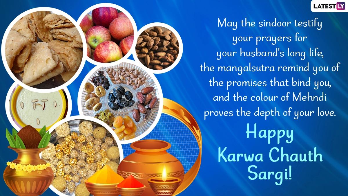 Karwa Chauth 2023 will be observed on Wednesday, November 1. It is a daylong fast observed by women for the long life of their husbands. Sargi is a cherished and integral part of the Karva Chauth tradition. This pre-dawn meal holds immense cultural and emotional significance as it symbolizes the love, blessings, and support of a mother-in-law for her daughter-in-law. It is the meal that the fasting woman, the daughter-in-law, consumes before sunrise to sustain her throughout the day of fasting. As you observe Sargi 2023, we at LatestLY have brought together a collection of messages you can download and share with one and all to wish them on this day.