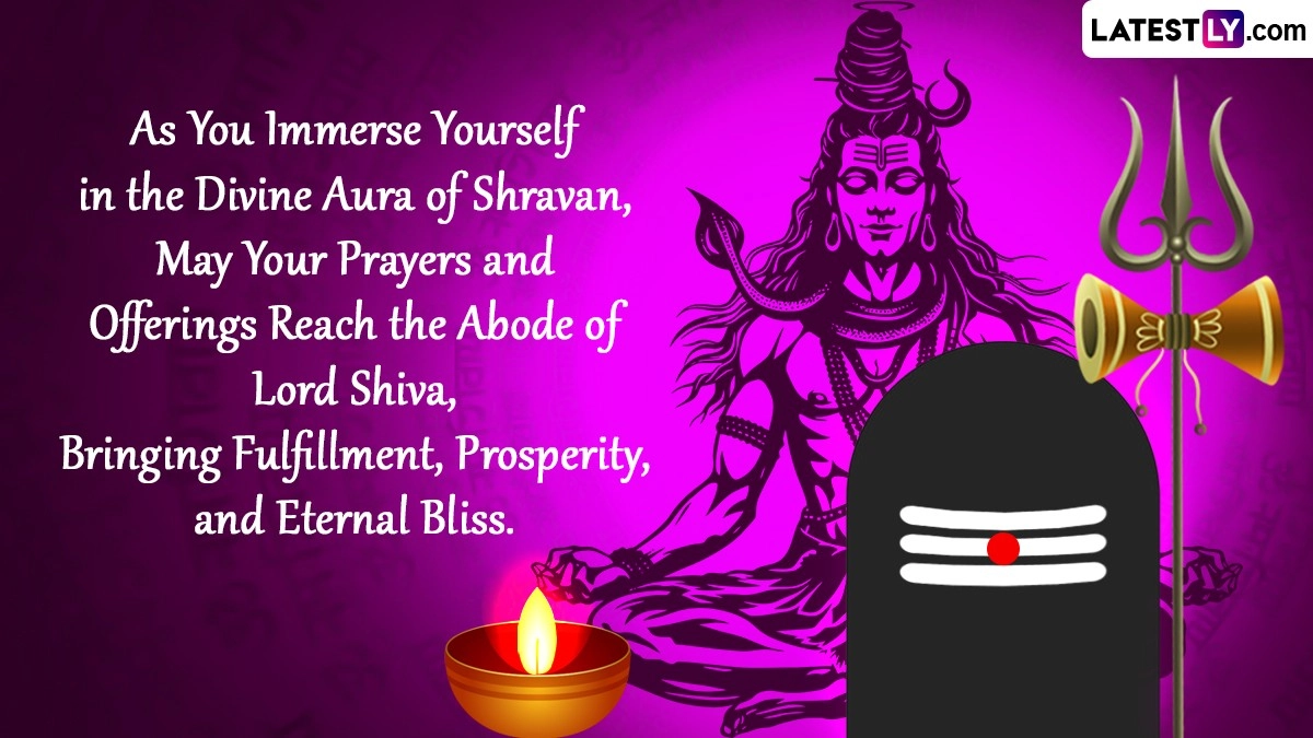 During Shravana, Maharashtra sees a surge in religious activities and pilgrimages. Devotees participate in numerous rituals, including the popular practice of observing "Sawan Somvar" (Monday fasts), which is believed to bring blessings and fulfilment of wishes. Temples dedicated to Lord Shiva are adorned with flowers, and special prayers and offerings are made. The month is also marked by the traditional recitation of hymns, the performance of Rudr Abhishek (ritual worship of Shiva), and various community gatherings centred around spiritual discourse. Download these Happy Sawan Somwar 2024 wishes, Shravan messages, greetings, HD images of Lord Shiva and wallpapers and worship Lord Shiva during the festival.