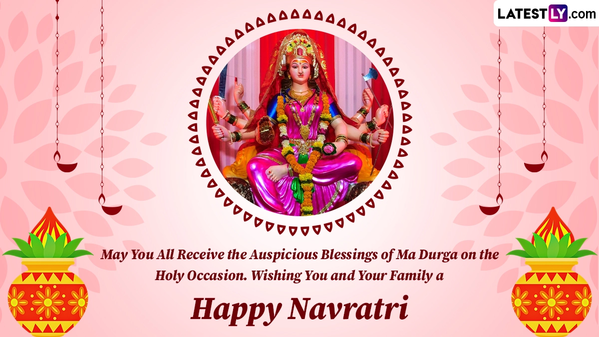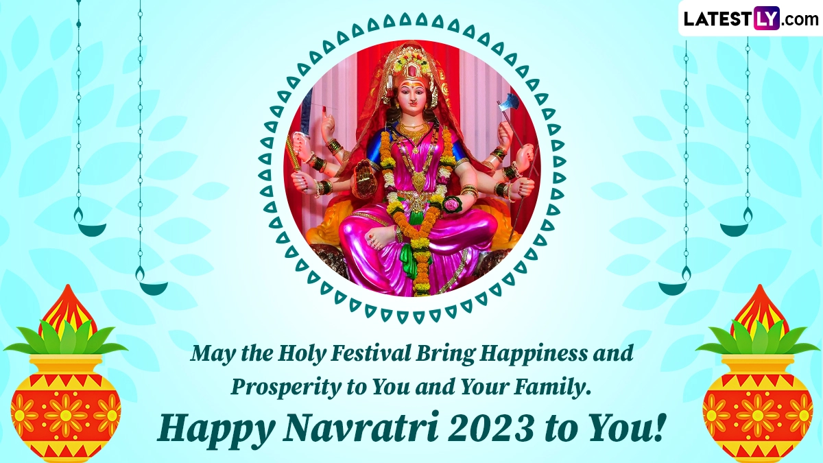 Each day of Navratri is focused on celebrating and reverting to a different Avatar of Goddess Durga and sharing stories about these avatars. Special delicacies are also made to appease the almighty. Many people dress up in specified colours for the 9 days of festivities, and it is believed to help appease Goddess Durga. As we celebrate Navratri 2023, here are some Happy Navratri 2023 wishes and messages, Navratri 2023 greetings, Navratri images and wallpapers, Happy Navratri WhatsApp Stickers and Facebook Status Pictures that you can share with family and friends.