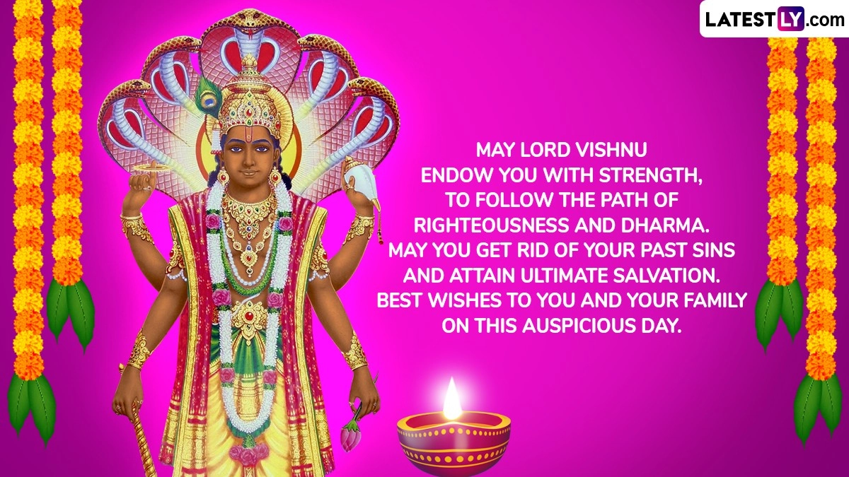 WhatsApp Message Reads: May Lord Vishnu Endow You With Strength, To Follow the Path of Righteousness and Dharma. May You Get Rid of Your Past Sins and Attain Ultimate Salvation. Best Wishes to You and Your Family on This Auspicious Day.