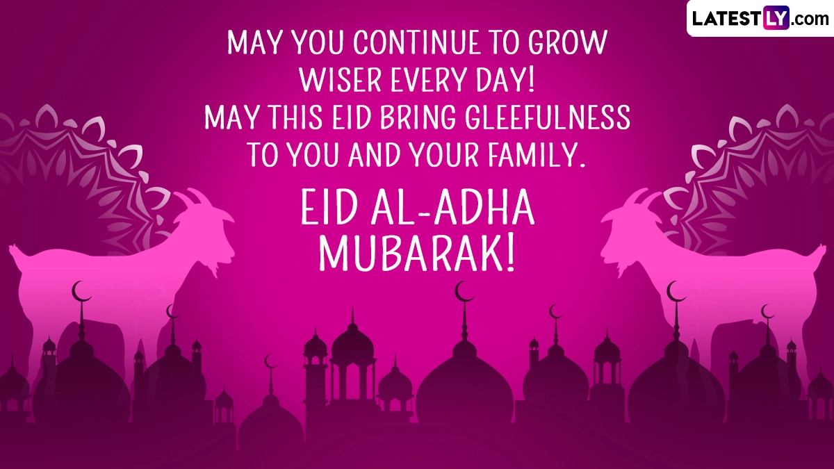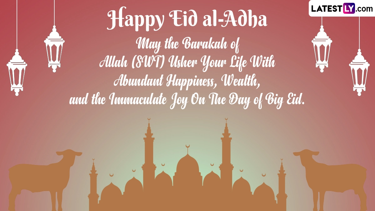 Hari Raya Aidiladha commemorates the willingness of Prophet Ibrahim (Abraham) to sacrifice his son, Ismail (Ishmael), as an act of obedience to God's command. Before Prophet Ibrahim could carry out the sacrifice, God intervened and provided a ram to be sacrificed instead, symbolising the importance of faith and submission to God's will. As you observe Hari Raya Aidiladha 2024, we at LatestLY, have put together a collection of messages that you can download and share with all your near and dear ones to wish them on this day. Download these Hari Raya Aidiladha 2024 messages, Eid Mubarak wishes, Bakrid HD wallpapers, Eid al-Adha images and greetings and celebrate the festival.