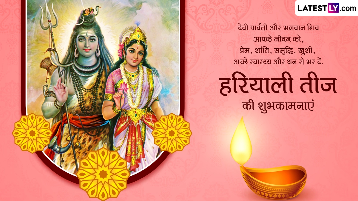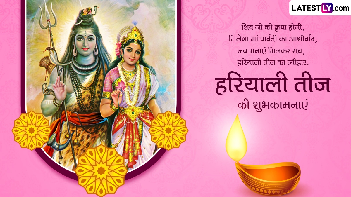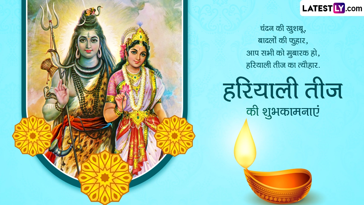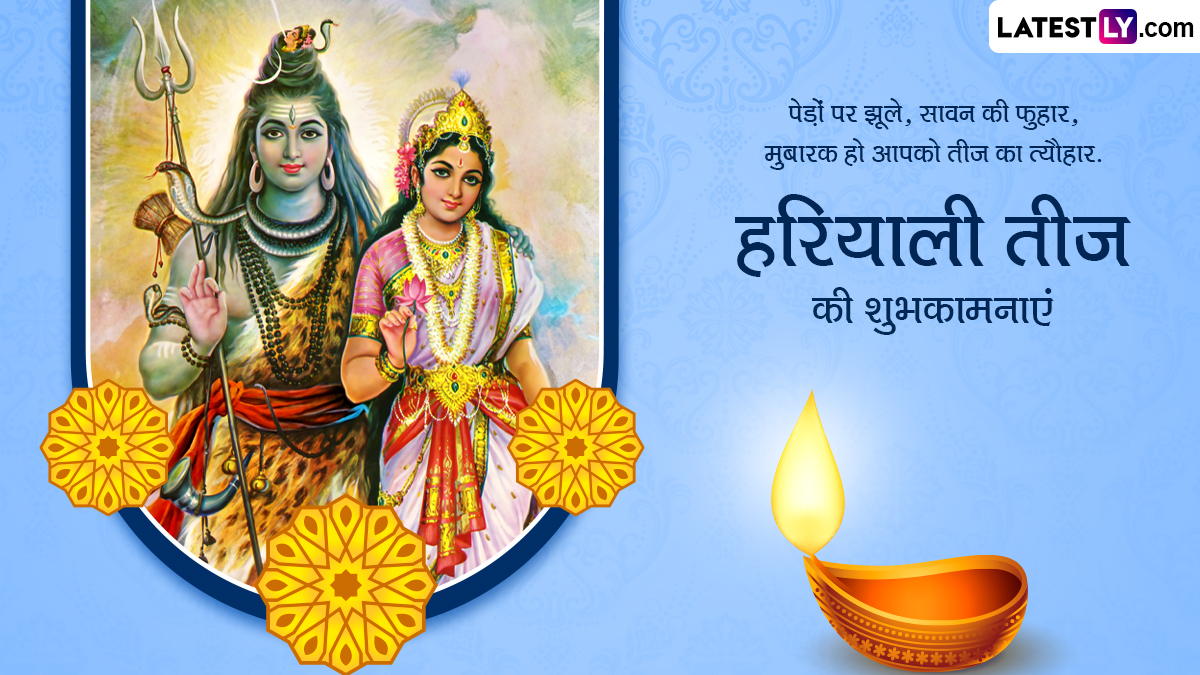 Hariyali Teej is a vibrant and culturally significant festival celebrated with much enthusiasm in various regions of India, particularly in Rajasthan, Gujarat, and parts of Uttar Pradesh. Falling in the monsoon season around July or August, this festival marks the onset of the rains and the transformation of the landscape into a lush, green paradise. Hariyali Teej 2024 falls on Wednesday, August 7. This day is dedicated to the goddess Parvati and signifies her reunion with Lord Shiva. The festival is a time when women come together to celebrate their marital bliss and pray for the well-being of their families. Rituals include fasting, adorning oneself in green attire, and participating in traditional songs and dances that celebrate the abundant greenery and the spirit of the monsoon. As you observe Hariyali Teej 2024, we bring you Hariyali Teej 2024 wishes in Hindi and HD images to share Hariyali Teej Ki Shubhkamnaye with friends and family.