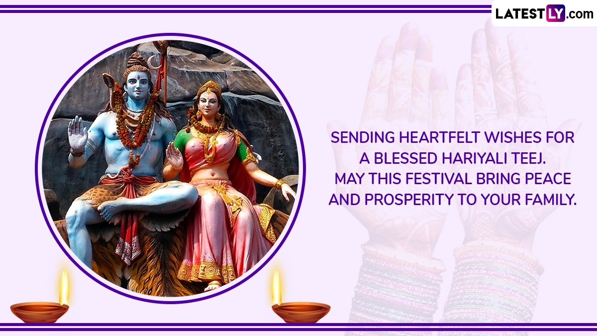 Hariyali Teej 2025 falls on Sunday, July 27. It is celebrated during the monsoon month of Shravana (July–August), is a vibrant festival that marks the union of Lord Shiva and Goddess Parvati. It is especially popular in northern and western India, particularly in Rajasthan, Uttar Pradesh, Bihar, and Madhya Pradesh. The word "Hariyali" means greenery, symbolising nature's abundance during this season, and "Teej" refers to the third day after the new moon. Married women observe fasts and pray for the health and longevity of their husbands, while unmarried girls seek blessings for a loving future partner. To celebrate Hariyali Teej 2025 on July 27, people often share Hariyali Teej 2025 wishes. Hence, we bring you Hariyali Teej 2025 wishes, WhatsApp messages, Shravan Teej greetings, HD images of Lord Shiva and Goddess Parvati, quotes and wallpapers that you can download for free online.