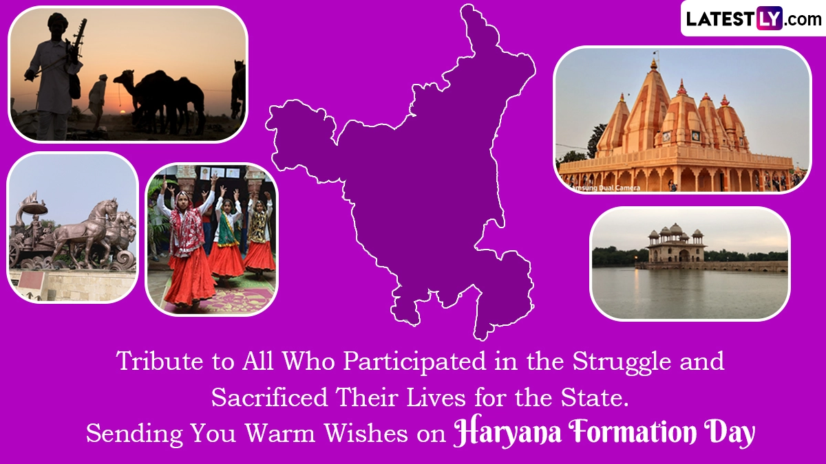 Haryana Day is an annual commemoration observed in the Indian state of Haryana on November 1st. This significant day marks the formation of Haryana in 1966 when it was separated from the larger state of Punjab.Ā The division was based on linguistic and cultural factors, as Haryana primarily comprises Hindi-speaking and culturally distinct regions. Haryana Day is a time for the people of the state to celebrate their unique heritage, identity, and achievements since its inception. On this day, various festivities and events take place throughout Haryana. As you celebrate Haryana Day 2023, we at LatestLY have brought together a collection of messages you can download and share with all your loved ones to wish them on this day.