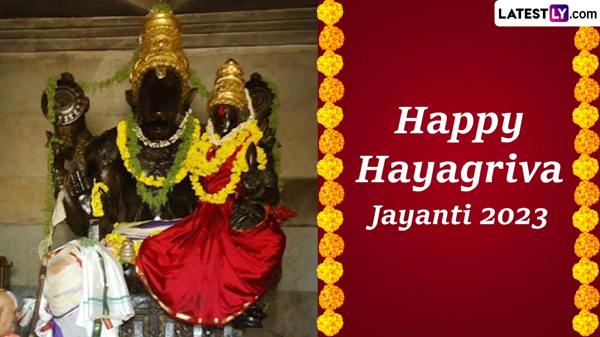 Hayagriva Jayanti 2023 will be observed on Wednesday, August 30. It is an essential observance in Hinduism that commemorates the appearance or birth of Lord Hayagriva, a deity often depicted as a horse-headed form of Lord Vishnu. As you observe Hayagriva Jayanti 2023, we at LatestLY have brought together a collection of messages you can download and share with one and all to wish them on this day with WhatsApp messages, images, HD wallpapers and SMS. Know the History of The Day That Honours Horse-Headed Form of Lord Vishnu.