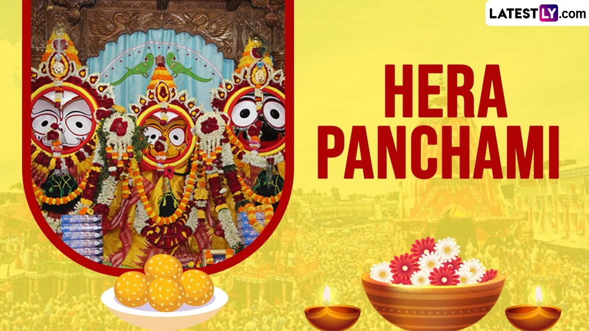 Hera Panchami is a significant Hindu festival observed as a part of the famous Jagannath Rath Yatra in Odisha’s Puri. Hera Panchami 2024 will be observed on July 11. Hera Panchami is celebrated on Ashada Shukla Panchami and falls on the fifth day of the Rath Yatra. The day symbolises a unique divine playfulness and spiritual bond between Lord Jagannath and his consort, Goddess Lakshmi. As part of the larger Rath Yatra festivities, Hera Panchami adds a distinctive layer of tradition and devotion to the celebrations. We at LatestLY will provide you with Hara Panchami 2024 wishes, greetings, messages, HD images, and wallpapers to celebrate the auspicious day with your close ones. Hera Panchami 2024 Date, Rituals and Significance: Know About the Auspicious Day Celebrated as Part of Jagannath Rath Yatra in Puri.