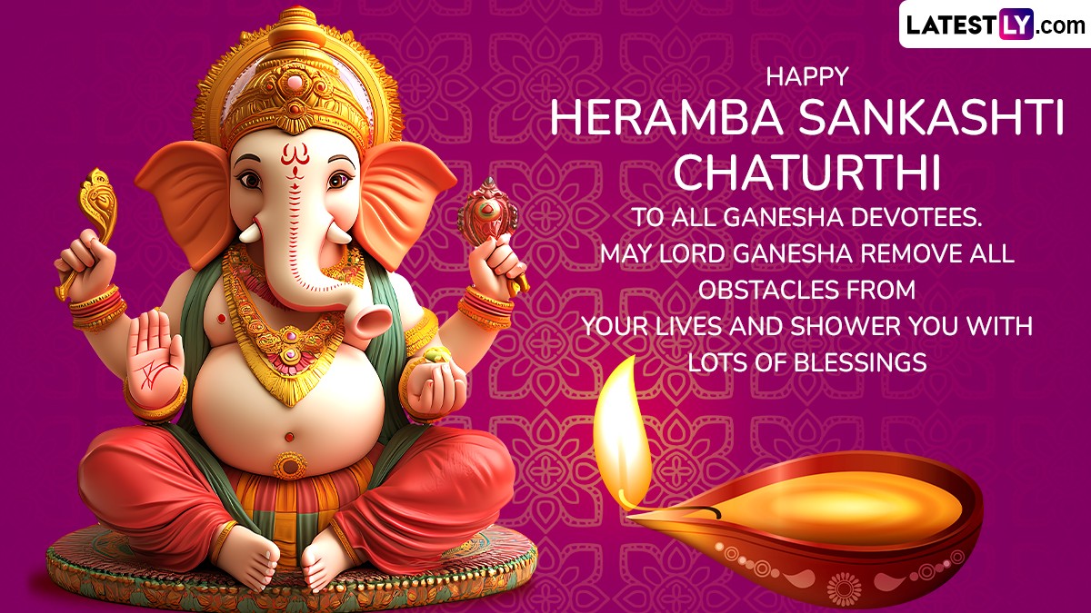 Heramba Sankashti Chaturthi is a Hindu festival dedicated to Lord Ganesha, the elephant-headed god of wisdom and prosperity. This festival, observed on the Chaturthi (fourth day) of the Krishna Paksha (waning phase of the moon) in the month of Ashwin (September-October), is particularly significant for devotees who seek to alleviate their difficulties and obstacles. Heramba Sankashti Chaturthi 2024 falls on Thursday, August 22. To celebrate the day, devotees can share Heramba Sankashti Chaturthi 2024 wishes to spread the festive spirits. Wish Happy Heramba Sankashti Chaturthi with these WhatsApp messages, Lord Ganesha HD images, quotes, messages and greetings to worship Heramba Maha Ganpati.