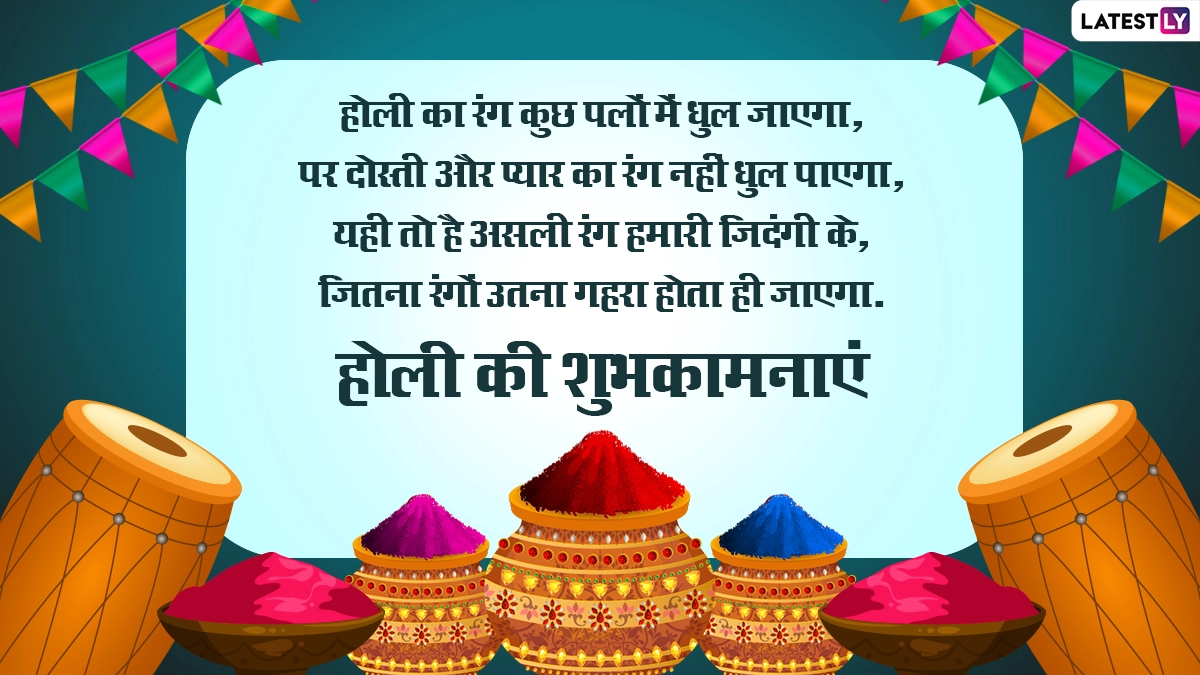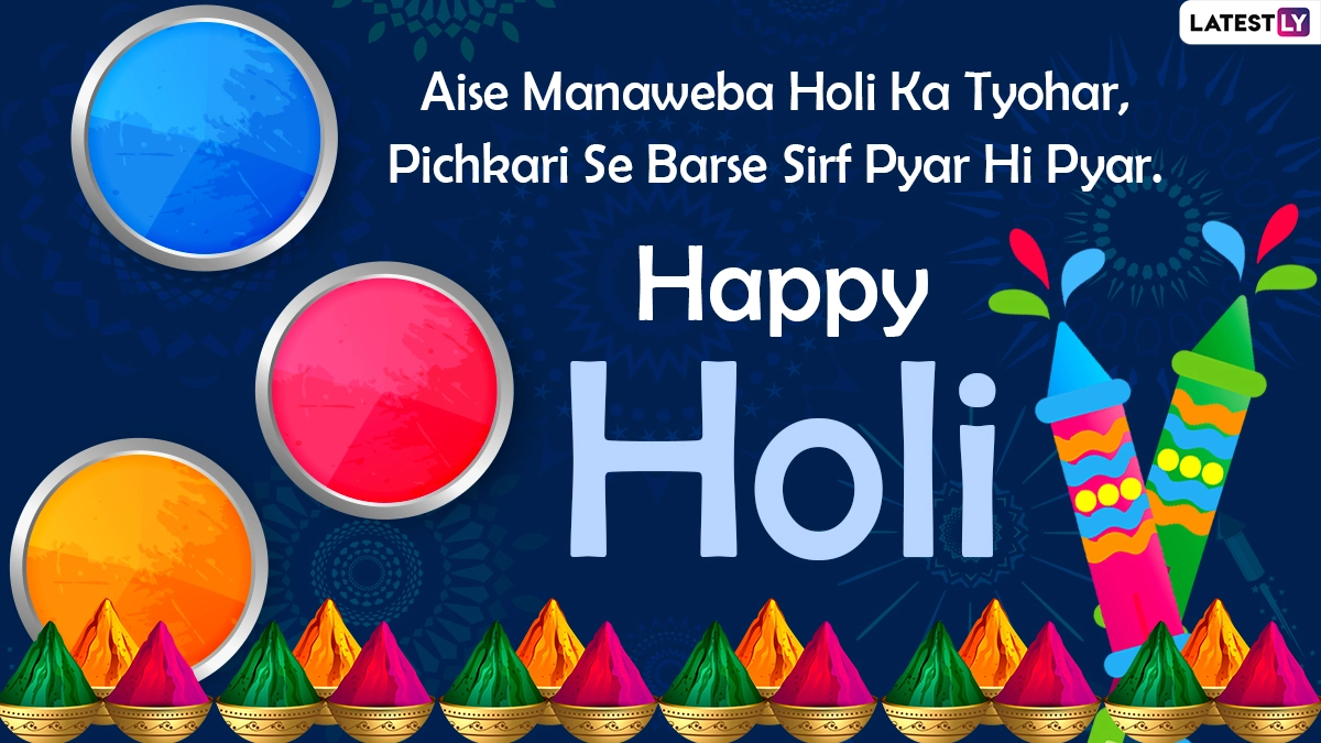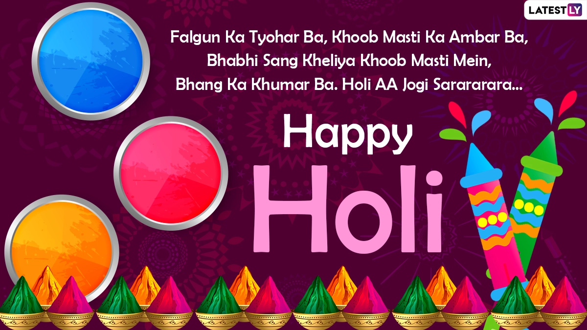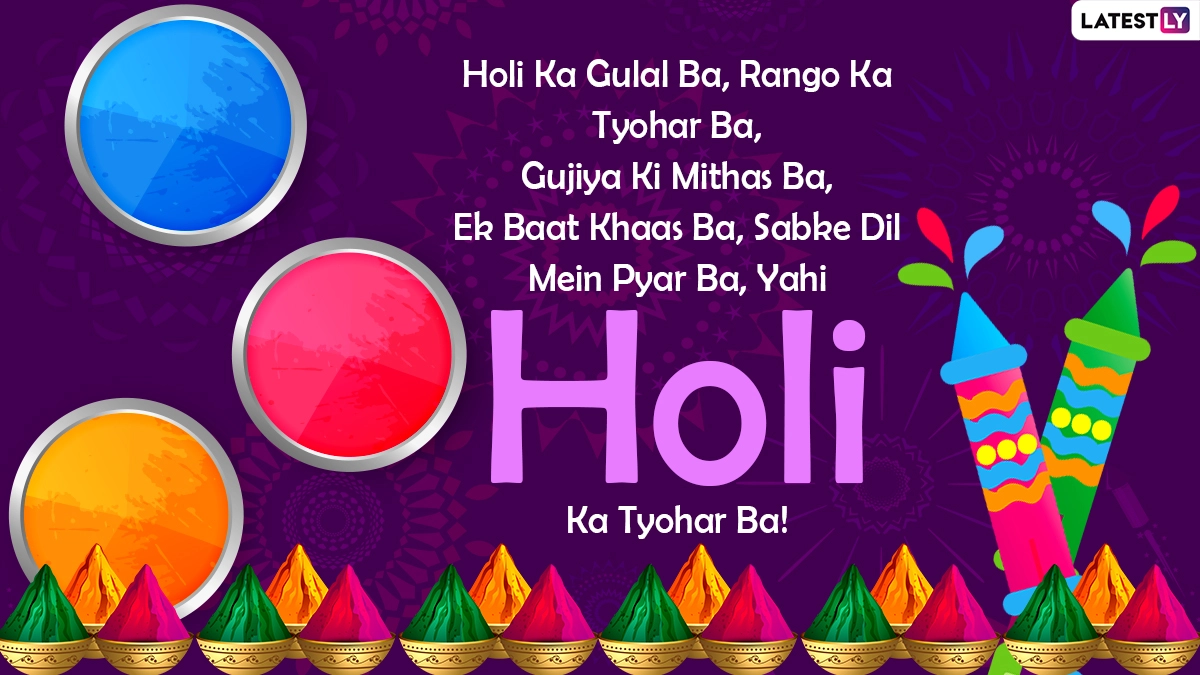 Holi, known as the festival of colours, is one of the most vibrant and joyous festivals celebrated in India, especially in North India, including Uttar Pradesh (UP), Bihar, and other northern states. And the joy is incomplete without the Holi Bhojpuri wishes and greetings. It marks the arrival of spring and the triumph of good over evil. The festival is celebrated with great enthusiasm and fervour, with people smearing each other with colours, dancing, singing, and feasting. Here's a collection of Holi wishes in Hindi, Happy Holi 2024 messages in Bhojpuri, Holi greetings in Hindi, Happy Holi 2024 images in Hindi, "Holi Hai" text messages, colourful GIFs, WhatsApp status and HD wallpapers to celebrate Rangwali Holi with family and friends. Holika Dahan 2024 Wishes & Choti Holi Greetings: WhatsApp Messages, Images, HD Wallpapers and SMS To Share With Your Loved Ones on Chhoti Holi.