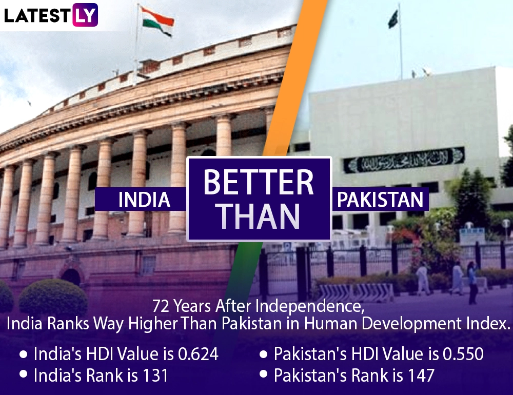 As per a recent Human Development Index (HDI) report, India ranks much higher than its arch-rival, Pakistan. Delving deep into the numbers' game; India's HDI value is 0.624 and currently ranks 131 in the list. As for Pakistan, its HDI value is 0.550, and its way down on the 147th position.
