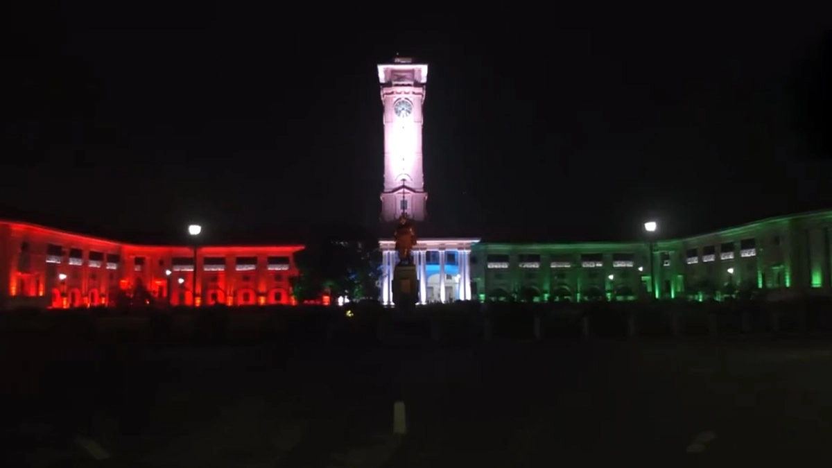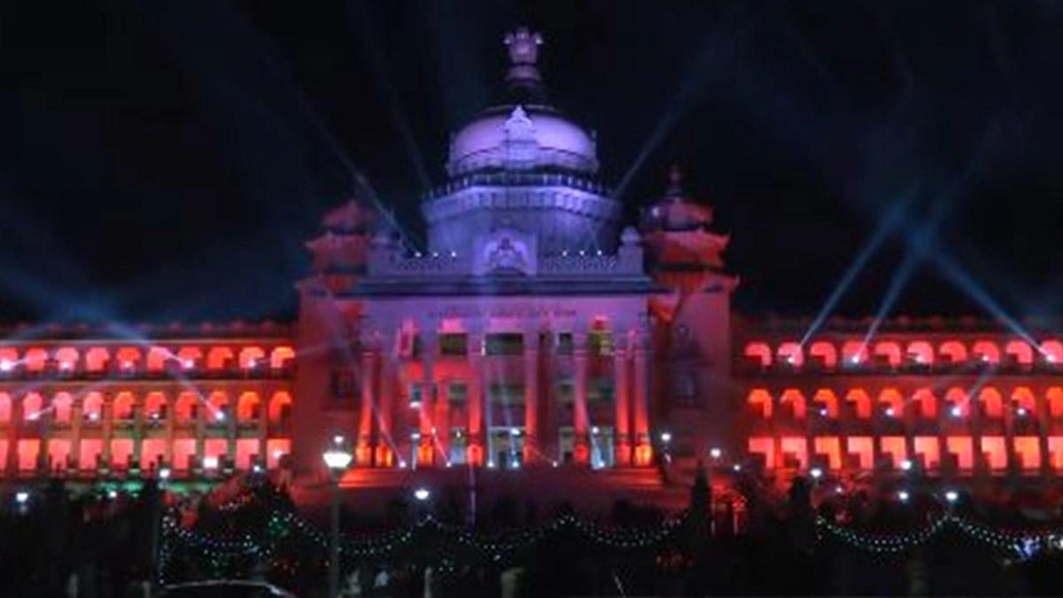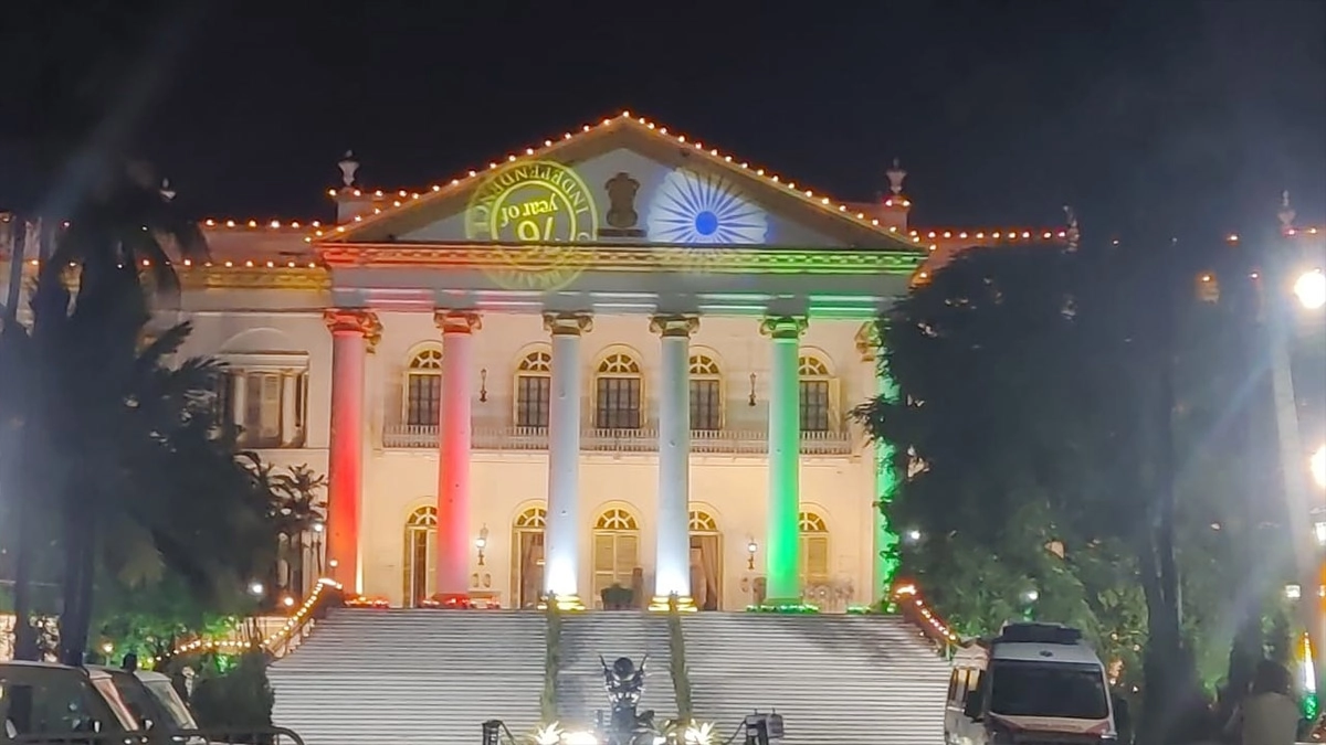 Vidhana Soudha, a legislative house in Bengaluru, Karnataka is lit up in Tricolour lights.