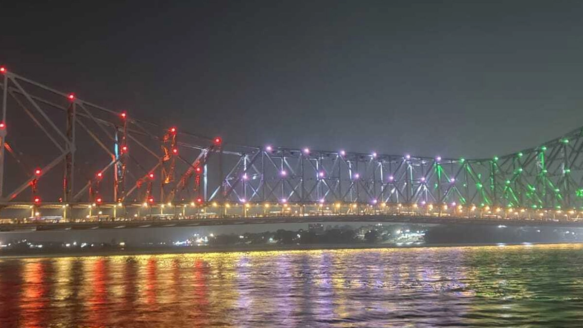 Howrah Bridge lit up in Tricolour to mark the occasion of 77th Independence Day.
