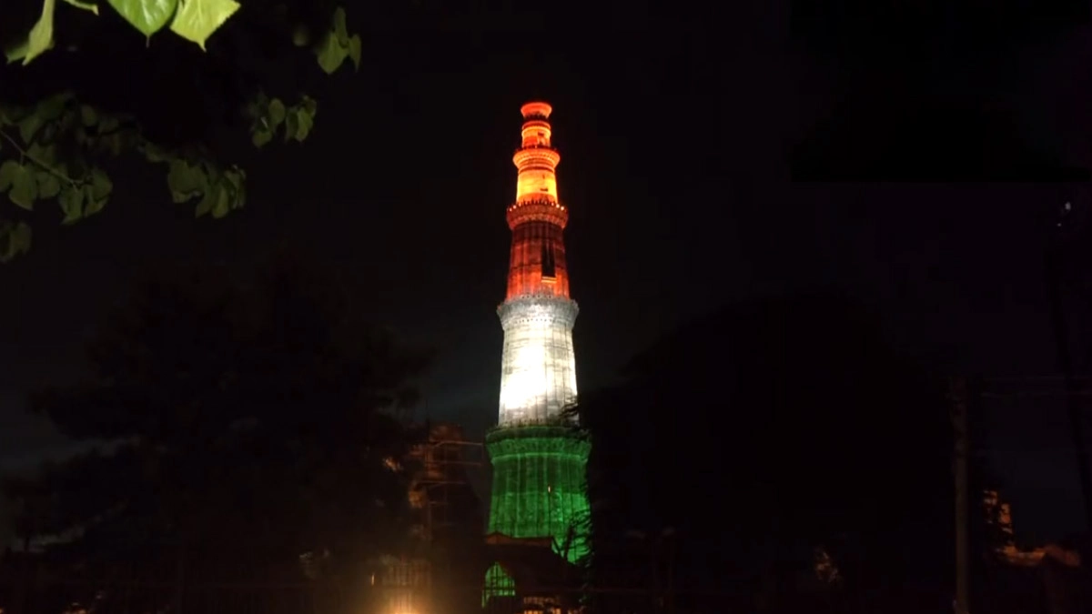 One of the most tourist attractions in Delhi, Qutub Minar is illuminated in Tricolour lights as the city soaks in Independence Day fervour.