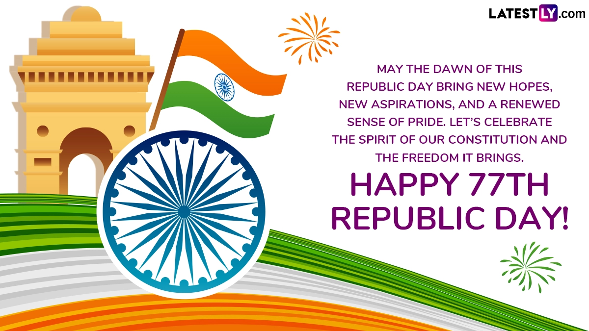 Happy 77th Republic Day Wishes: May the Dawn of This Republic Day Bring New Hopes, New Aspirations, and a Renewed Sense of Pride. Let’s Celebrate the Spirit of Our Constitution and the Freedom It Brings. Happy 77th Republic Day!