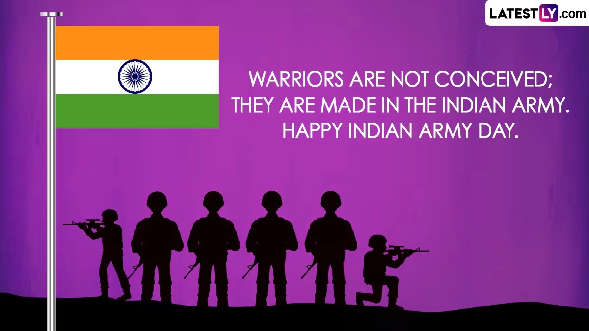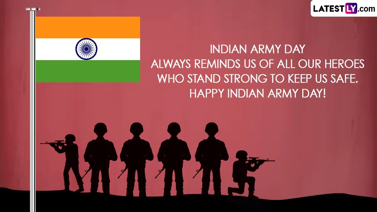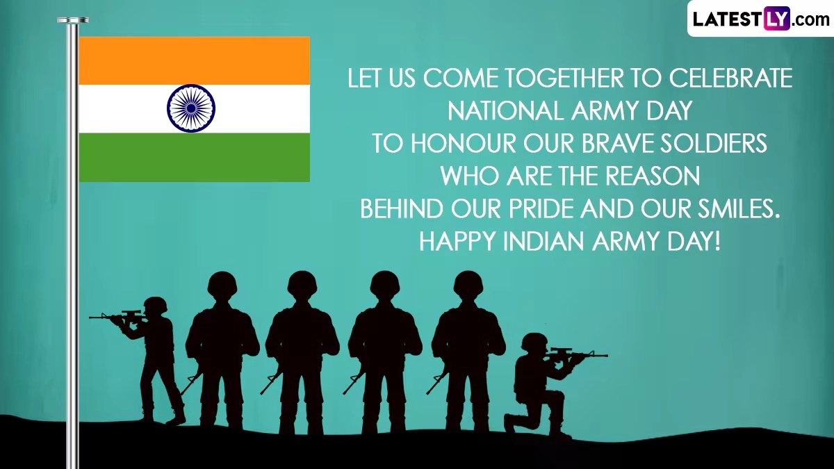 Indian Army Day, celebrated annually on January 15, pays tribute to the valour, dedication, and sacrifices of the Indian Army. This day marks the historic moment in 1949 when General KM Cariappa became the first Indian Commander-in-Chief of the Indian Army, succeeding General Sir Francis Butcher. Indian Army Day serves as a reminder of the indomitable spirit of the nation's soldiers who stand as guardians of our sovereignty and security. Indian Army Day 2025 is the celebration of 77th Army Day. To mark the occasion, we bring you Indian Army Day 2025 wishes, quotes, messages, HD images, wallpapers and greetings. Army Day Parade 2025: Robotic Mules To Feature in Indian Army's First Parade in Pune on January 15, Rehearsal Video Surfaces.
