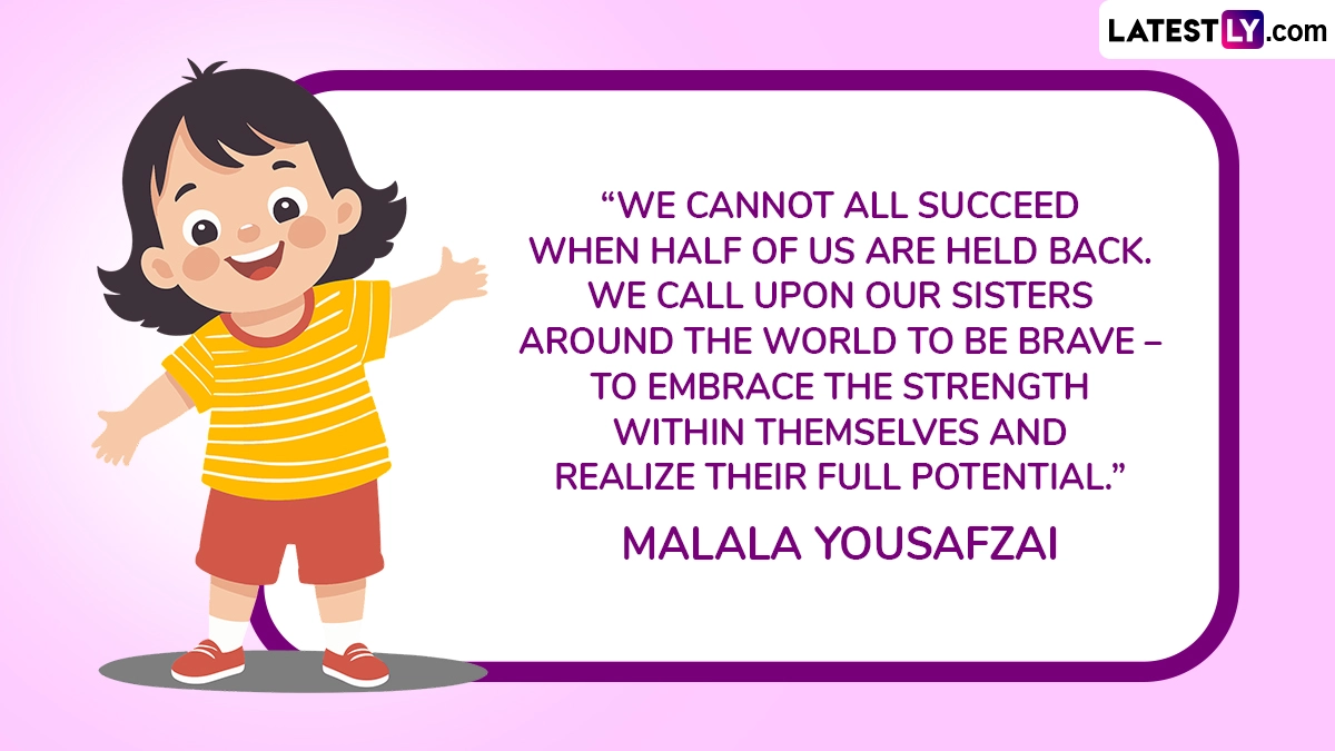International Day of the Girl Child 2025 is being observed today, October 11. The annual observance is focused on raising awareness about the concerning realities of the continued prevalence of female foeticide, the constant threat that girl children across the world face and the steps that one can take to help raise awareness about these issues and ensure that every girl child feels safe, cherished and happy. As we celebrate the International Day of the Girl Child 2025, here are International Day of the Girl Child 2025 wishes and greetings, quotes and sayings on International Day of the Girl Child, and International Day of the Girl Child images and HD wallpapers to share with female members of your family and friend circle.