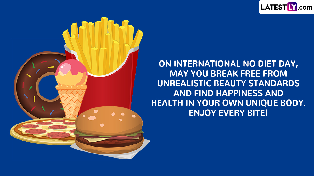International No Diet Day is observed every year on May 6 to promote body positivity, raise awareness about the dangers of dieting, and encourage people to appreciate their natural body shape. Initiated in 1992 by British feminist Mary Evans Young, the day challenges societal beauty standards and the obsession with thinness. OnĀ International No Diet Day 2025, share these HappyĀ International No Diet Day wishes, fun quotes, messages, greetings, HD images and wallpapers.Ā