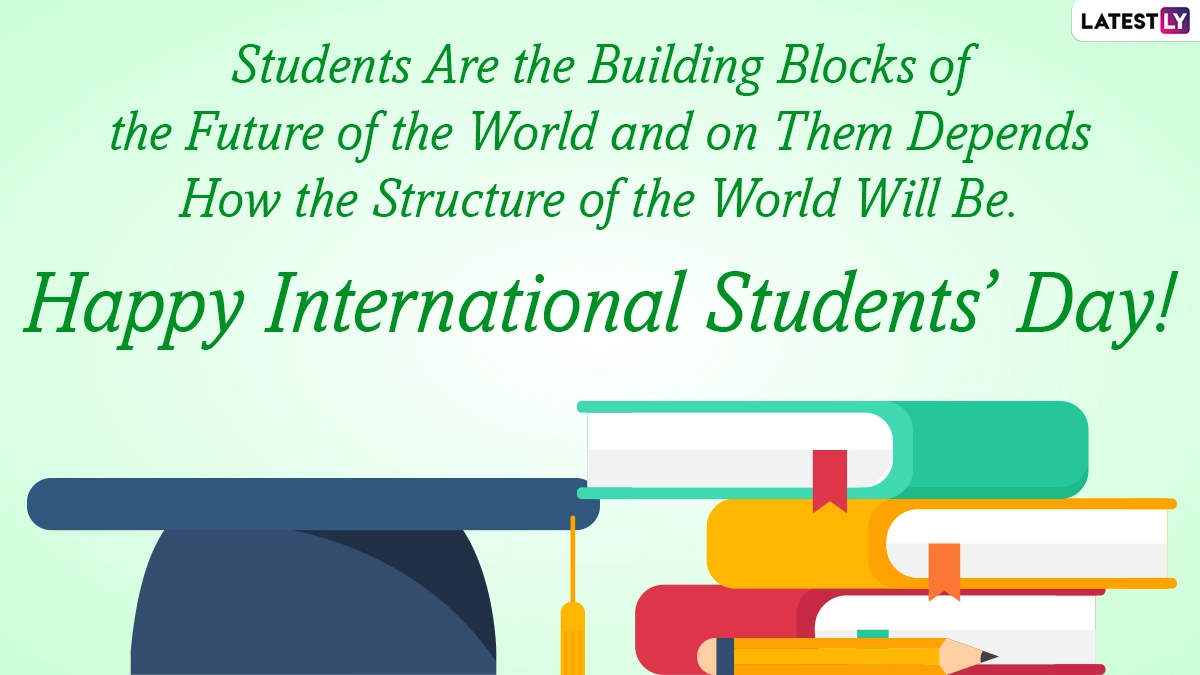 Facebook Greetings Read: Students Are the Building Blocks of the Future of the World and on Them Depends How the Structure of the World Will Be. Happy International Studentsā Day!